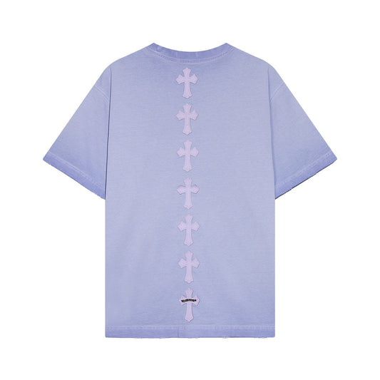 T-shirt bleu clair délavé avec logo fer à cheval Chrome Hearts
