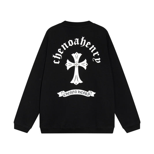 Sweat-shirt noir à croix blanche et cœurs chromés
