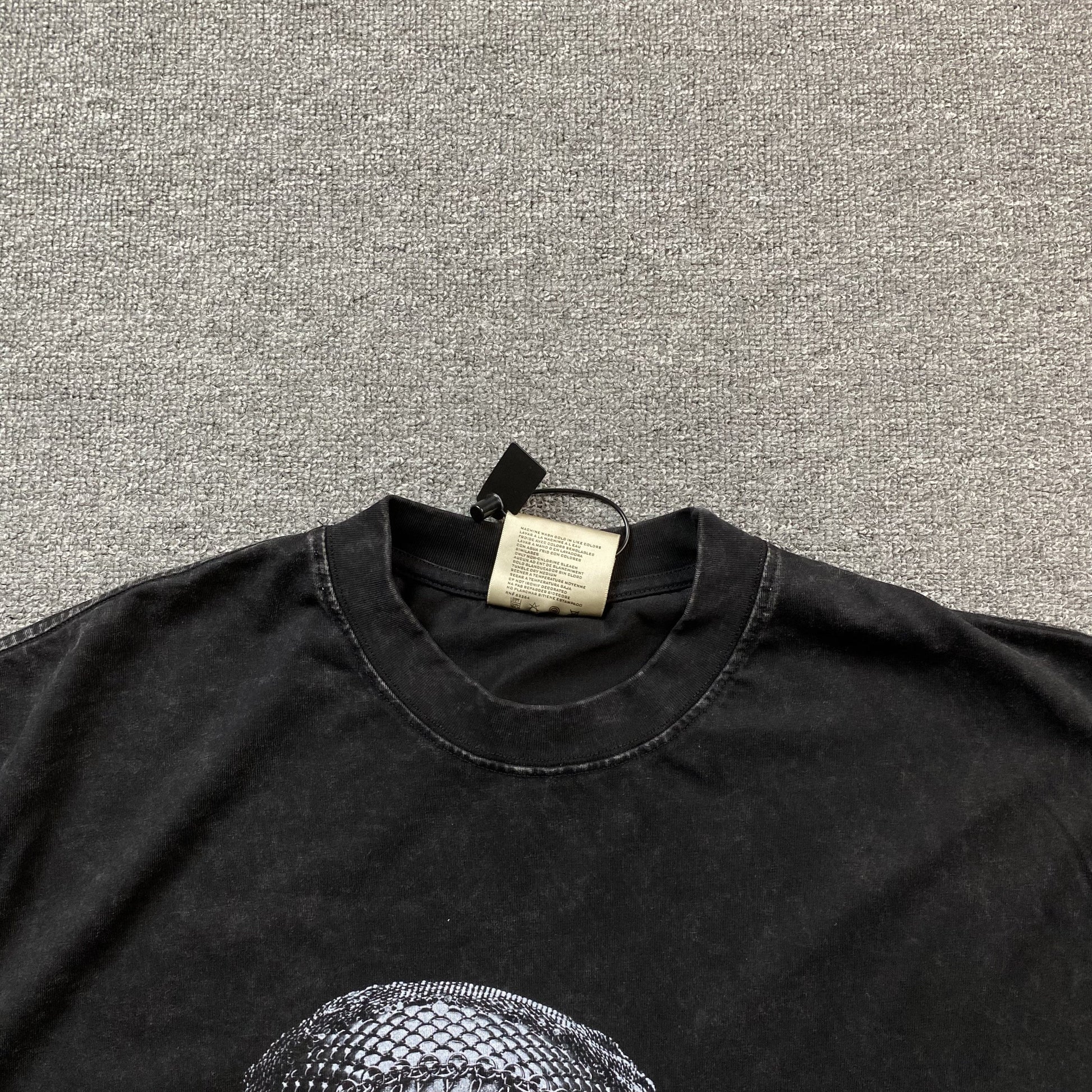 Avec son imprimé délavé et vieilli d'A$AP Rocky , ce t-shirt gris foncé délavé arbore un style rétro , évoquant l'esprit des t-shirts de tournée classiques. Sa coupe décontractée est idéale avec un pantalon cargo, un jean ou sous une veste pour un look audacieux et tendance.