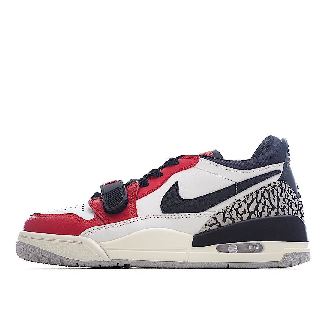 L'empeigne est confectionnée en cuir blanc de première qualité, offrant une base sobre et polyvalente. Le garde-boue emblématique en cuir verni est également blanc, assurant une allure élégante et harmonieuse. Le point fort de cette chaussure réside dans ses touches de rouge éclatant, présentes notamment sur le logo Jumpman, les œillets et la doublure intérieure. Ces éléments rouges apportent une note de couleur dynamique, rappelant les couleurs classiques des Chicago Bulls et rehaussant l'attrait visuel de la sneaker.