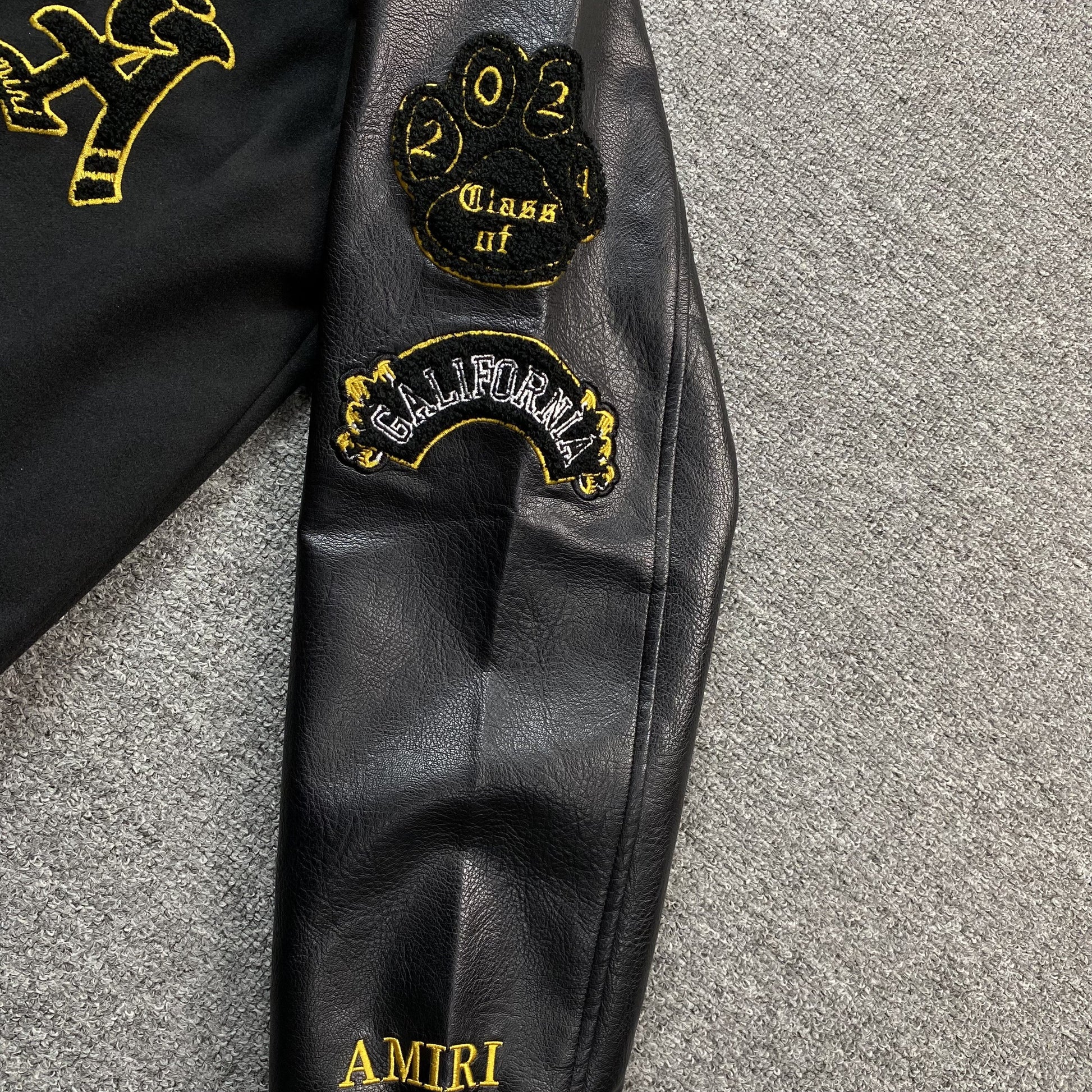 La veste universitaire AMIRI LION (réplique) incarne le streetwear de luxe avec une touche rebelle , une pièce forte pour celles et ceux qui affirment leur style. Confectionnée en laine et cuir haut de gamme , cette veste universitaire offre une coupe structurée et confortable , alliant l'esthétique athlétique classique à l'énergie rock signature d'Amiri .