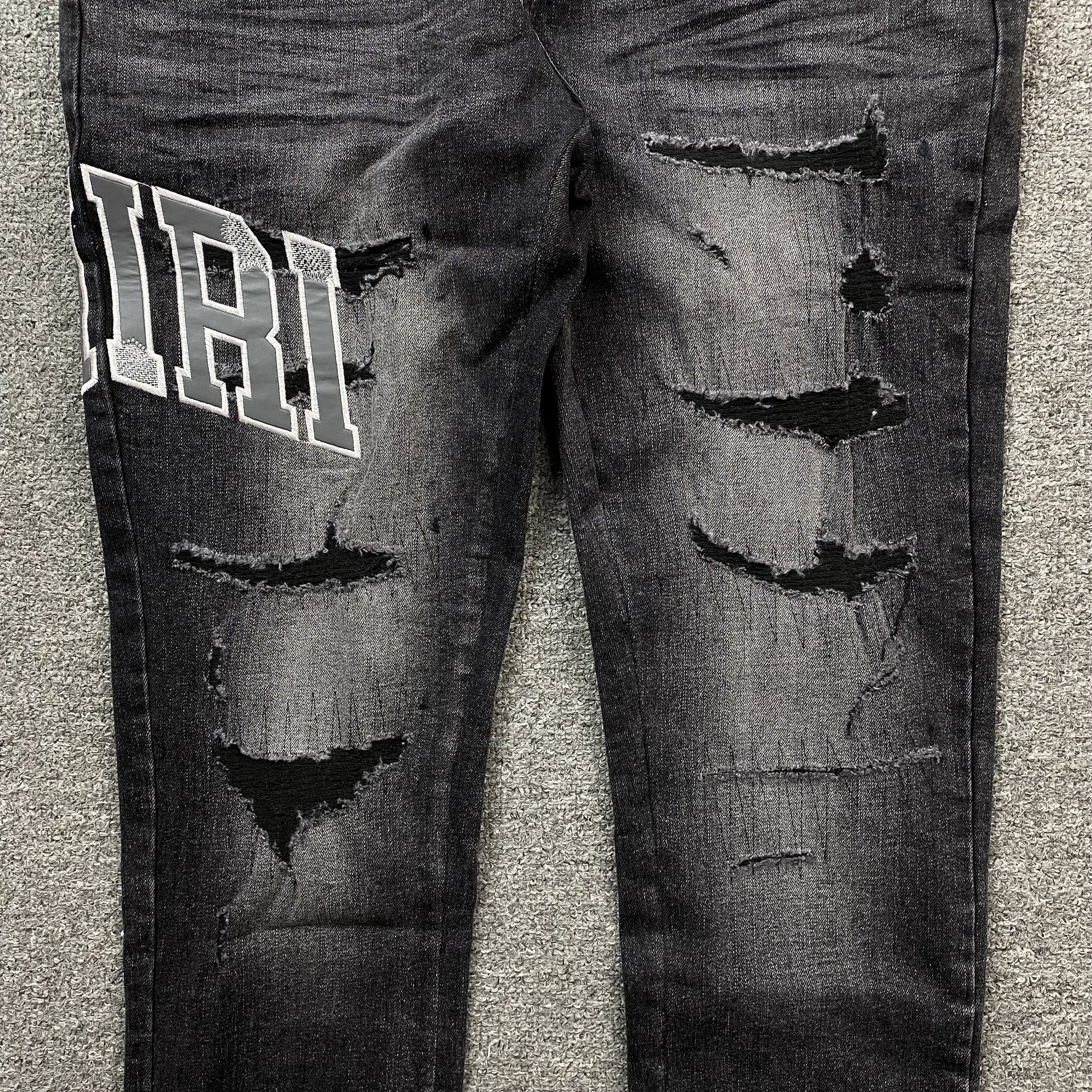 JEANS DE RÉPARATION AVEC LOGO UNIVERSITAIRE AMIRI