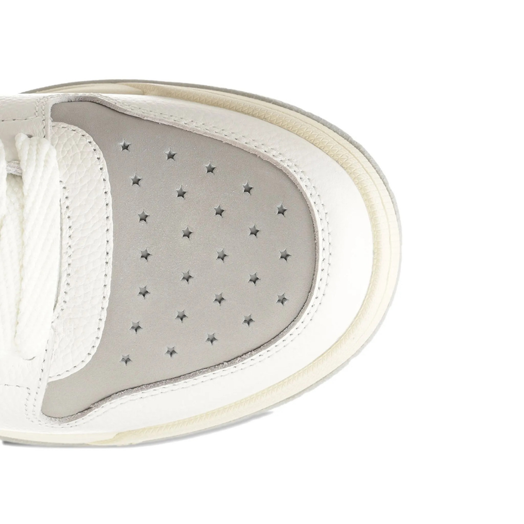 To clean your sneakers, start by removing any dirt or debris from the soles of the shoes using a soft-bristled brush. Next, dampen a clean cloth with some warm water and mild dish soap, and use it to gently scrub any dirty or scuffed areas on the shoes. Avoid getting the leather upper part of the shoes too wet, as this can cause damage. Once you've cleaned the shoes to your satisfaction, stuff the shoes with newspaper to help them retain their shape, and let them air dry completely before wearing them again.