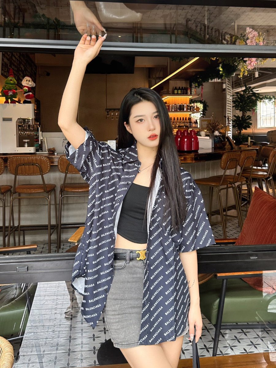 Chemise Balenciaga à imprimé logo intégral (noire)