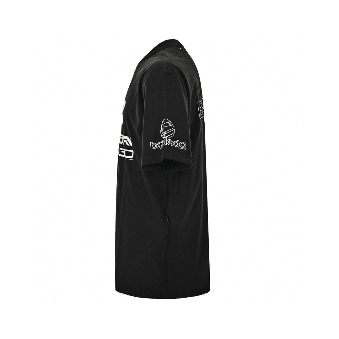Ce t-shirt Balenciaga arbore un motif graphique audacieux, orné de multiples logos « BB » et d'inscriptions sur le devant et les manches. Confectionné en coton noir de haute qualité, il allie confort et style distinctif et moderne. Idéal pour affirmer son style, ce t-shirt apporte une touche d'originalité à toutes vos tenues décontractées.
