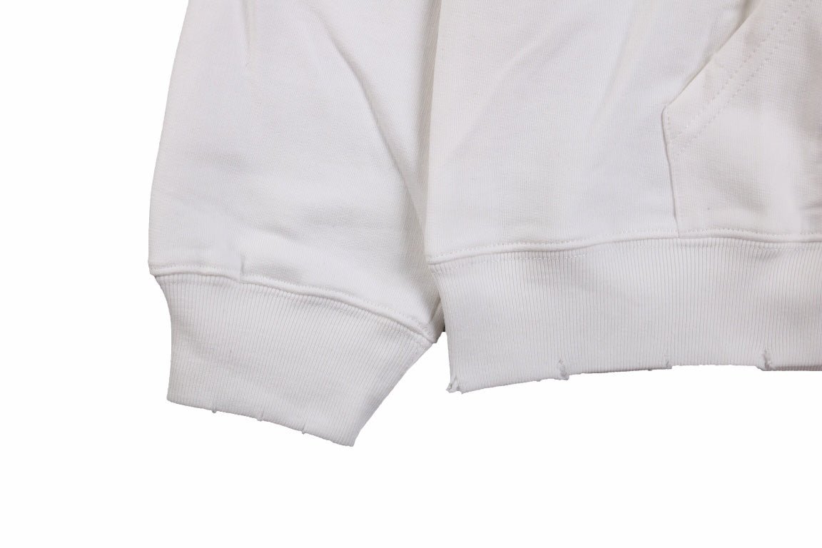 Sweat à capuche blanc orné du logo Balenciaga Paris noir style graffiti sur la poitrine. Coupe confortable et décontractée. Poche kangourou et capuche à cordon. Idéal pour un look casual et stylé.