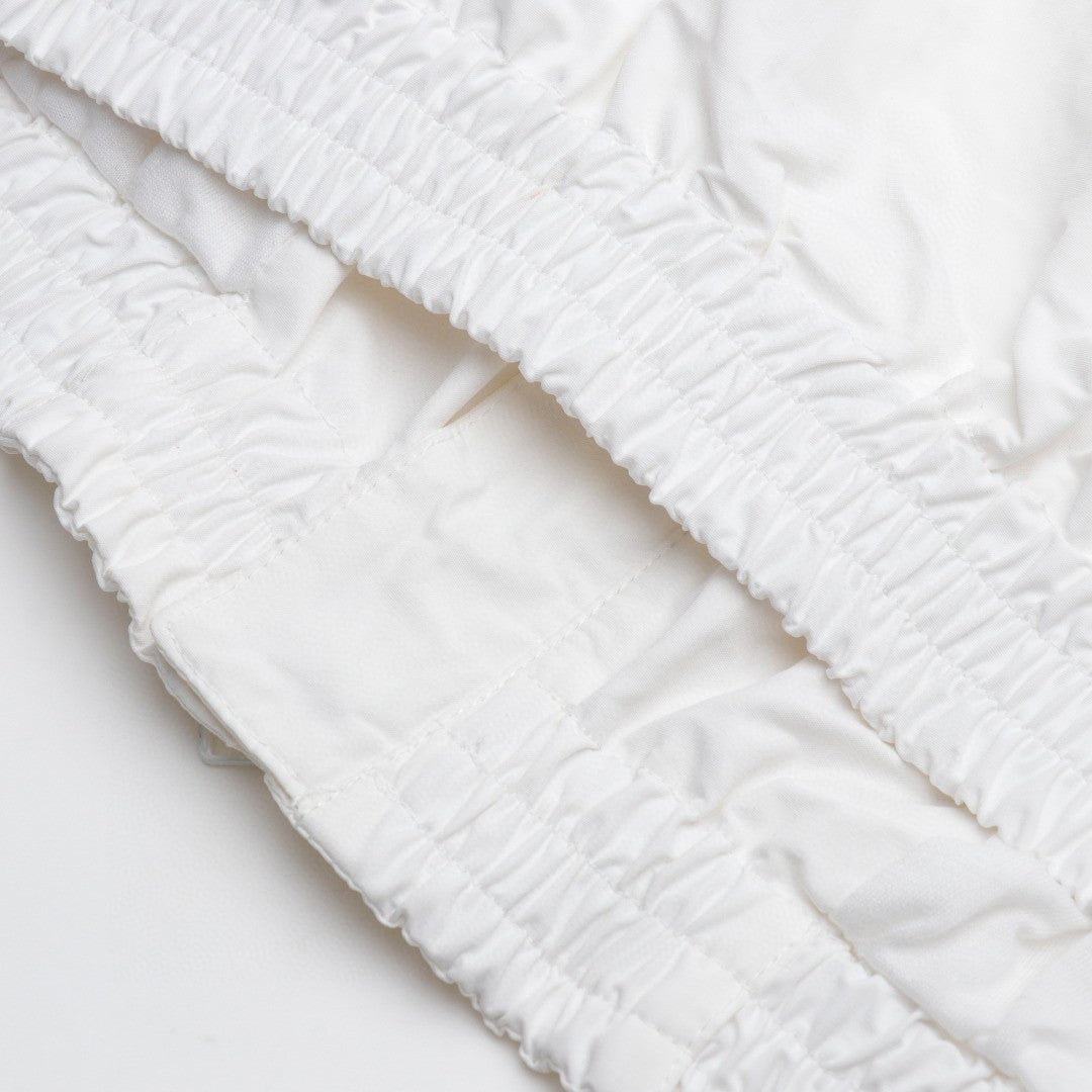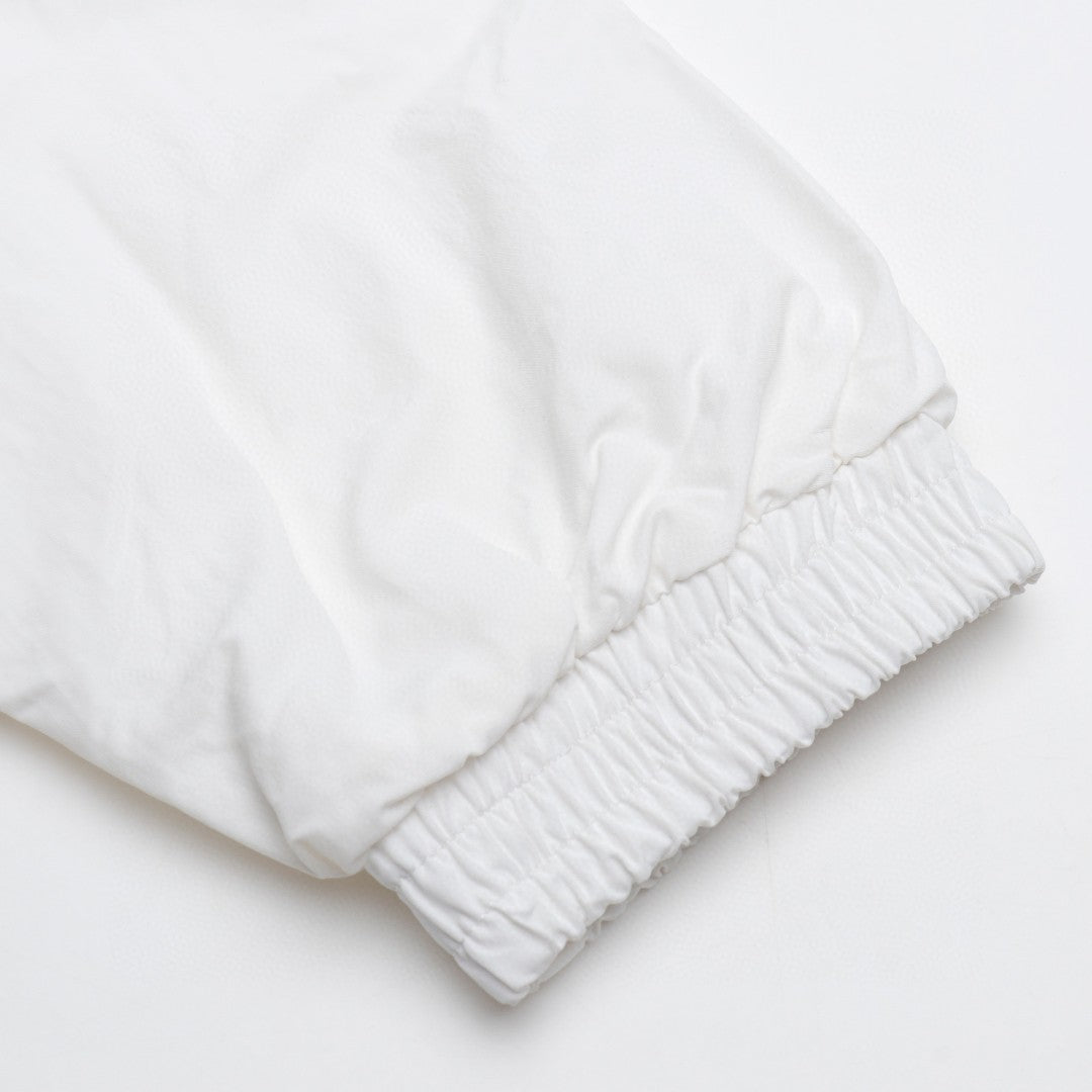 Cette veste Balenciaga arbore un design minimaliste d'un blanc immaculé. Elle est dotée d'une fermeture éclair sur le devant et de deux poches latérales. Sa matière légère la rend idéale pour la superposition. Parfaite pour un look élégant et moderne.
