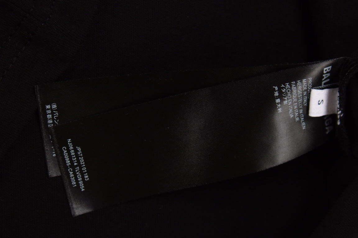 T-shirt noir à manches longues avec logo Balenciaga marron sur la poitrine. Design simple et minimaliste. Coupe confortable, idéal au quotidien.