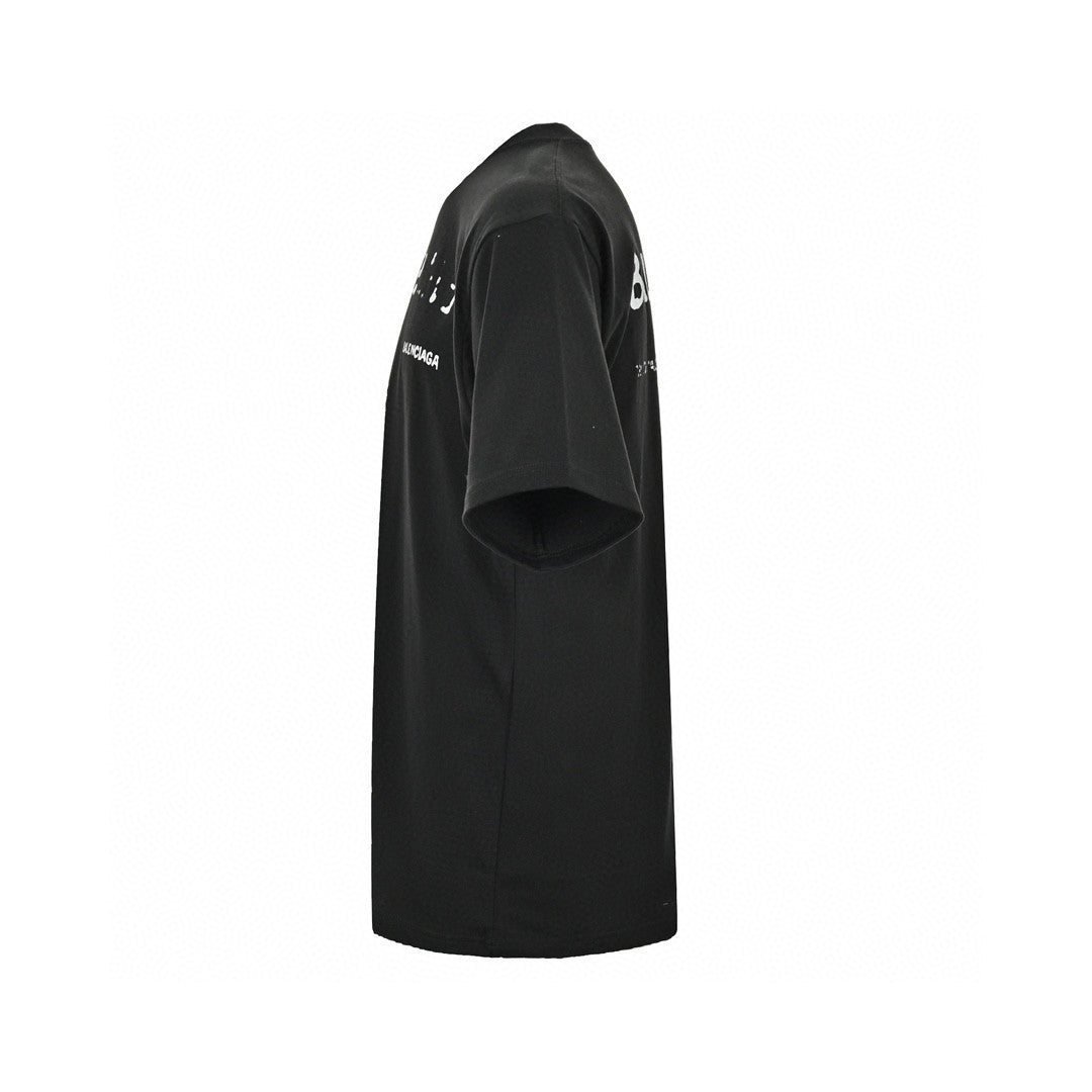 Ce t-shirt Balenciaga arbore un design noir épuré. Le devant présente un motif graphique unique, avec un logo Balenciaga partiellement dissimulé en blanc, créant un effet abstrait. Son esthétique minimaliste et moderne en fait le vêtement idéal pour un style décontracté et contemporain. Parfait pour apporter une touche d'originalité à vos tenues du quotidien.