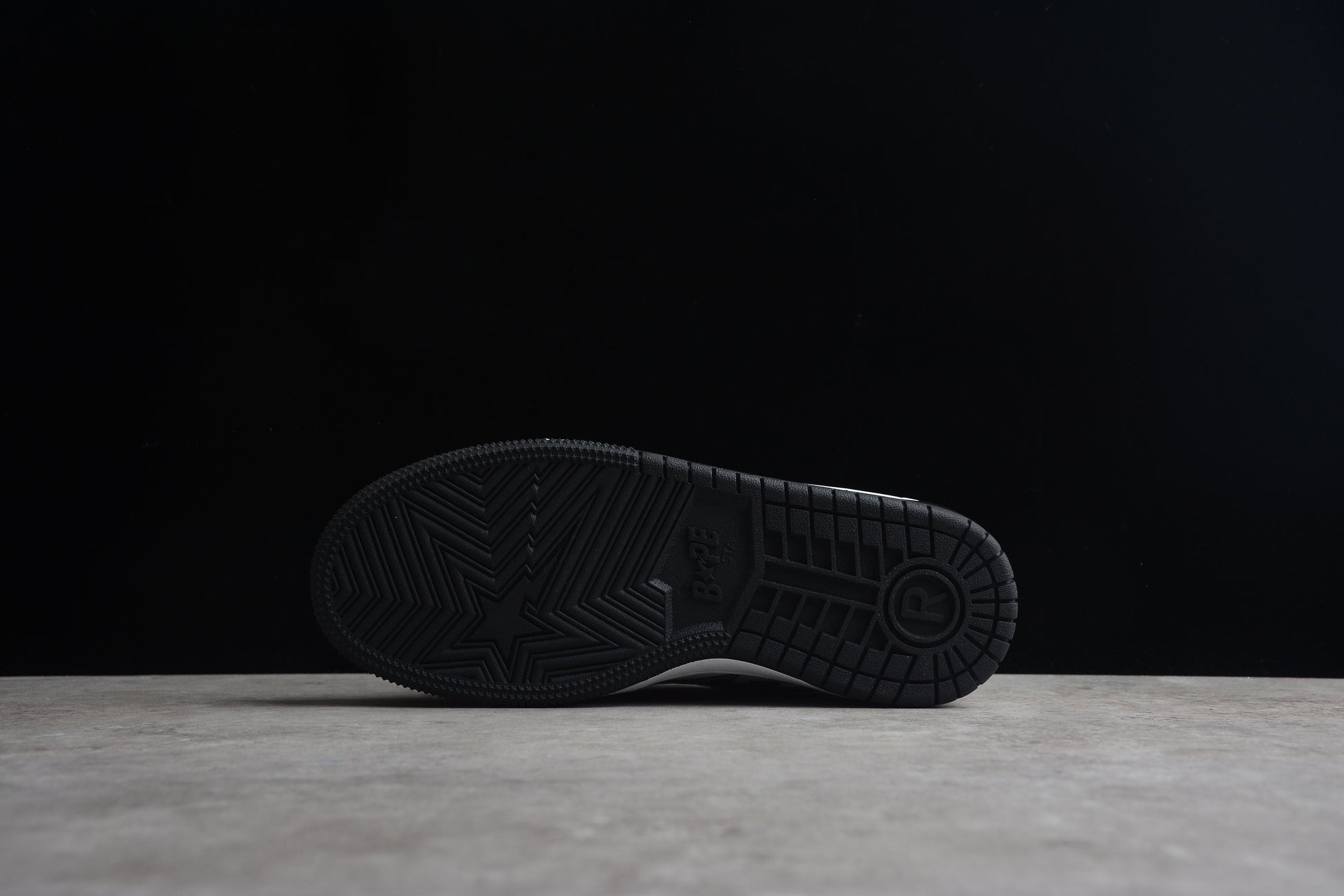Confectionnées en cuir haut de gamme, ces baskets allient durabilité et confort luxueux. Leur semelle blanche est ornée de subtils motifs camouflage BAPE en relief, apportant texture et profondeur au design. Le logo BAPE en forme d'étoile noire sur le côté crée un contraste saisissant, mettant en valeur le motif emblématique de la marque.