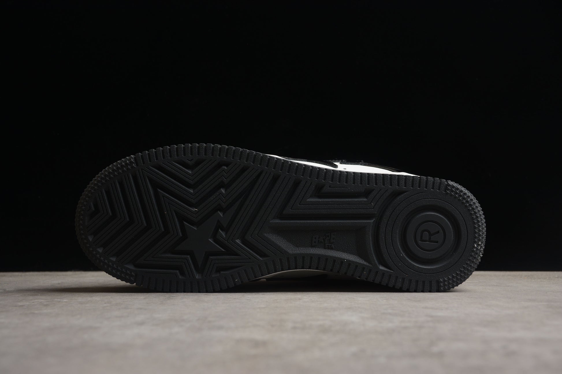 La semelle épaisse en caoutchouc, blanche avec des détails noirs assortis, complète parfaitement le design et assure une excellente adhérence et une grande durabilité. Le logo BAPE discret sur la semelle renforce encore le caractère unique de la sneaker.