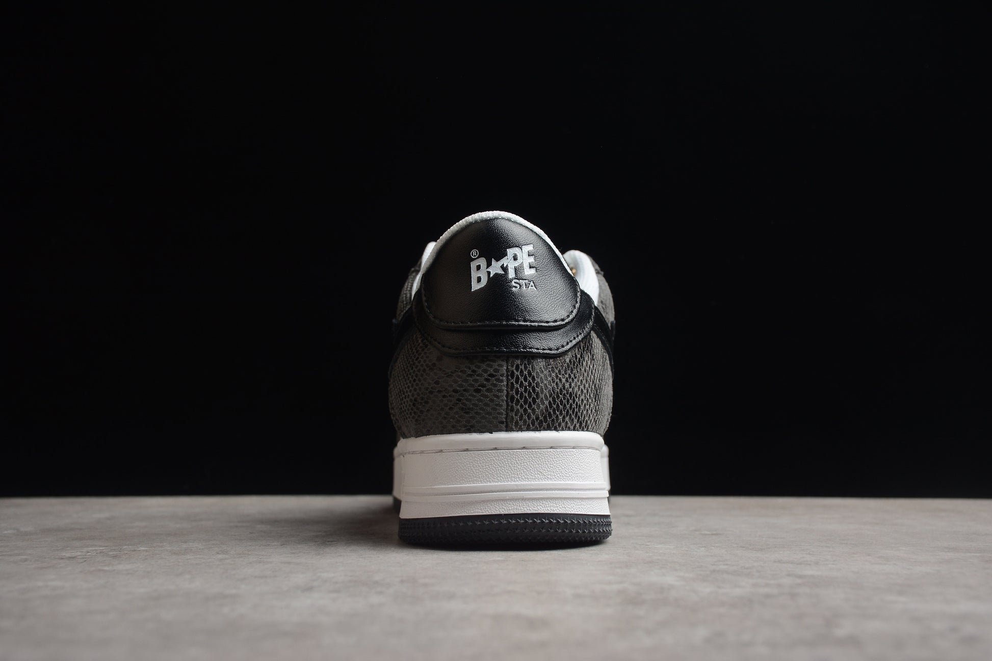 Affirmez votre style avec les baskets basses BAPE STA à motif peau de serpent noir. Plus que de simples chaussures, ces baskets sont l'expression même de votre style et de votre individualité, conçues pour vous démarquer en toutes circonstances. Apportez une touche d'audace et de sophistication à votre garde-robe grâce à cette paire de baskets d'exception.
