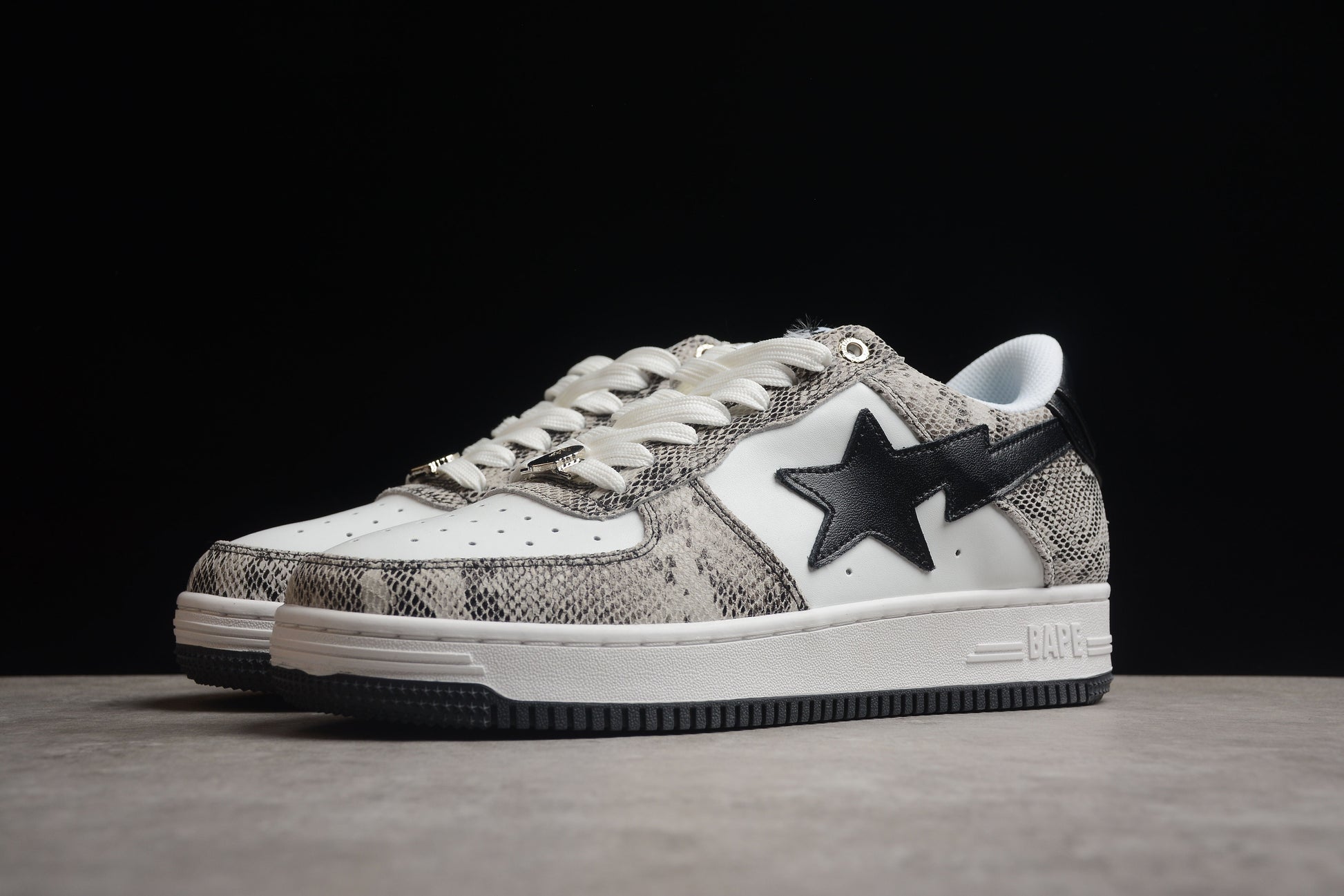 Découvrez les baskets basses BAPE STA à motif peau de serpent, une pièce audacieuse et stylée qui complétera à merveille votre collection de chaussures. Ces baskets fusionnent avec brio haute couture et culture streetwear, ce qui en fait un choix de prédilection pour celles et ceux qui apprécient un design unique et une qualité premium.