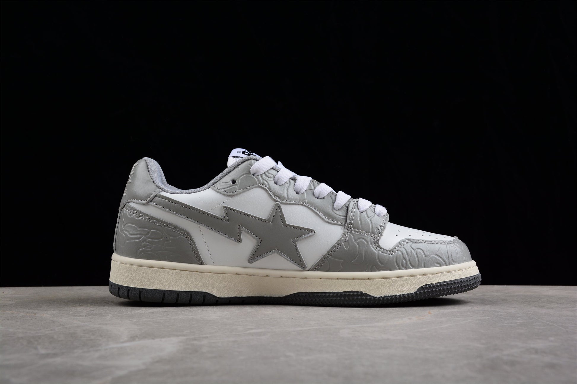 Affirmez votre style avec élégance grâce aux baskets basses BAPE STA blanches et grises. Plus que de simples chaussures, ces baskets sont l'expression même de votre style et de votre personnalité, conçues pour vous permettre de vous démarquer en toute circonstance. Apportez une touche de sophistication à votre garde-robe avec cette paire de baskets d'exception.