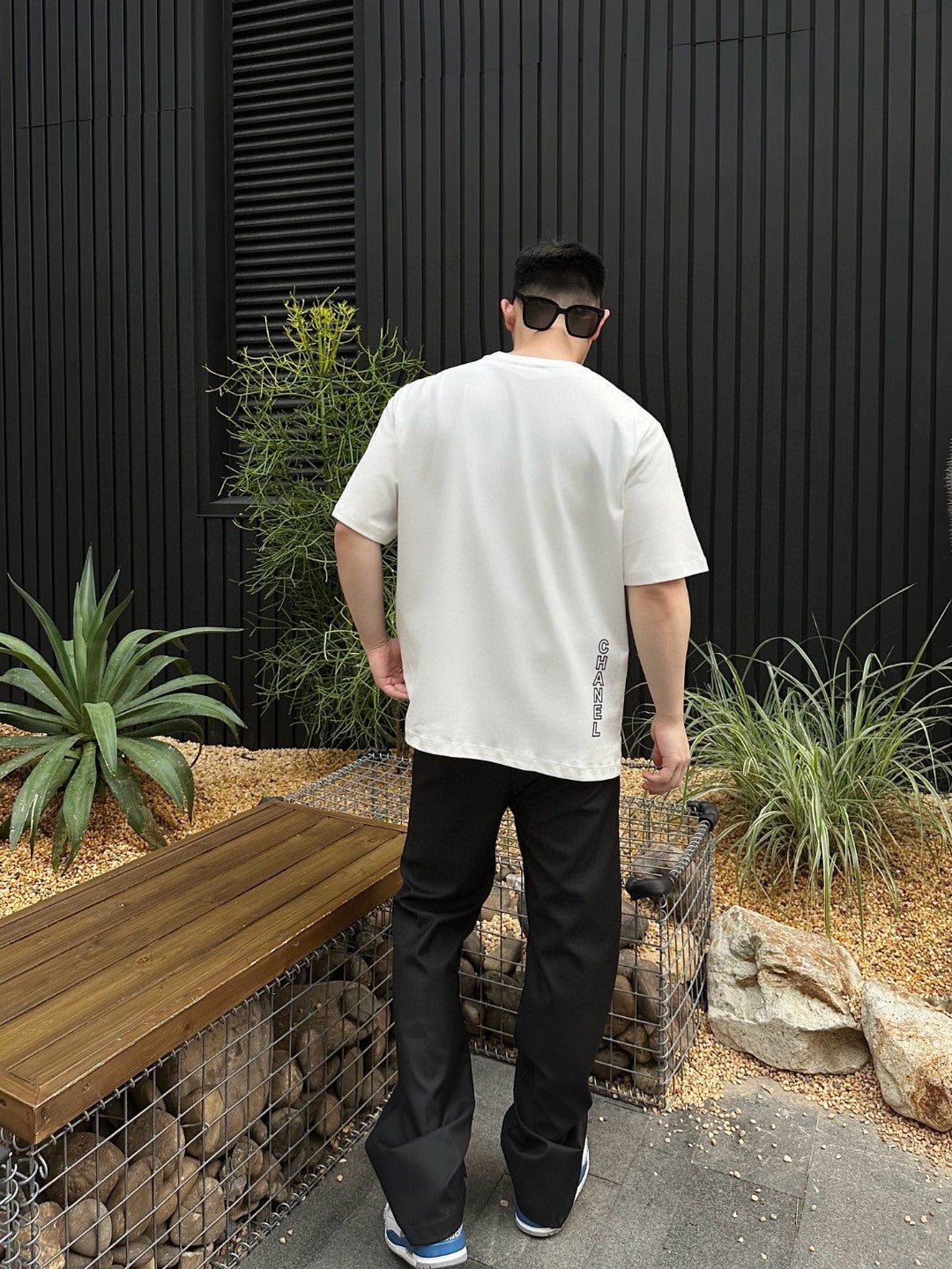 Ce t-shirt blanc Chanel arbore un design minimaliste, orné du logo Chanel en lettres délicates, façon manuscrite, sur la poitrine gauche. Sa simplicité et son élégance en font une pièce polyvalente, idéale pour des tenues décontractées ou plus habillées. Confectionné dans un tissu de haute qualité, il allie confort et style, pour s'adapter à toutes les occasions.
