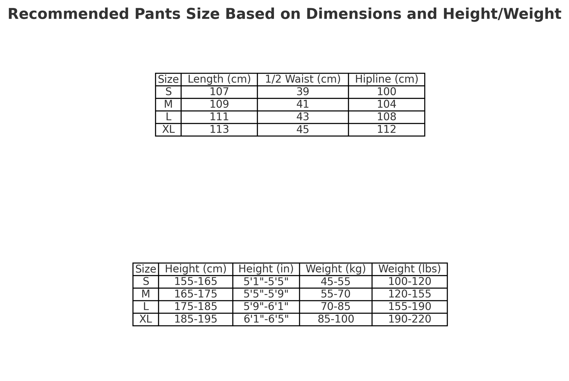 Tableau des Tailles