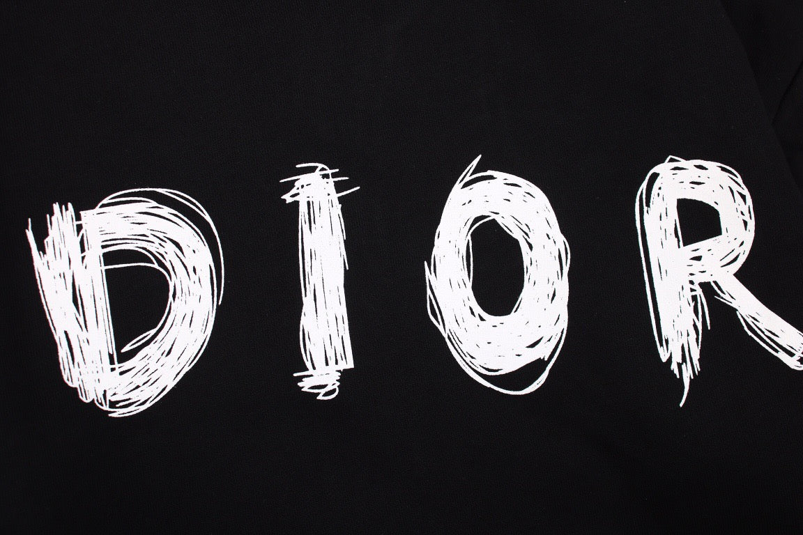 Ce sweat à capuche Dior noir arbore un logo « DIOR » audacieux, façon coup de pinceau, sur le devant. Il allie un style décontracté à une touche artistique, idéal pour affirmer son style. Il est doté d'une capuche à cordon et d'une poche kangourou pour plus de confort et de praticité.