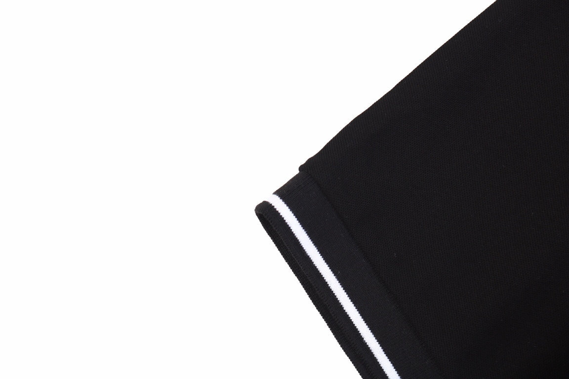 Ce polo Dior arbore un logo floral. Noir avec des finitions blanches au col et aux manches, il est idéal pour une allure élégante et raffinée.