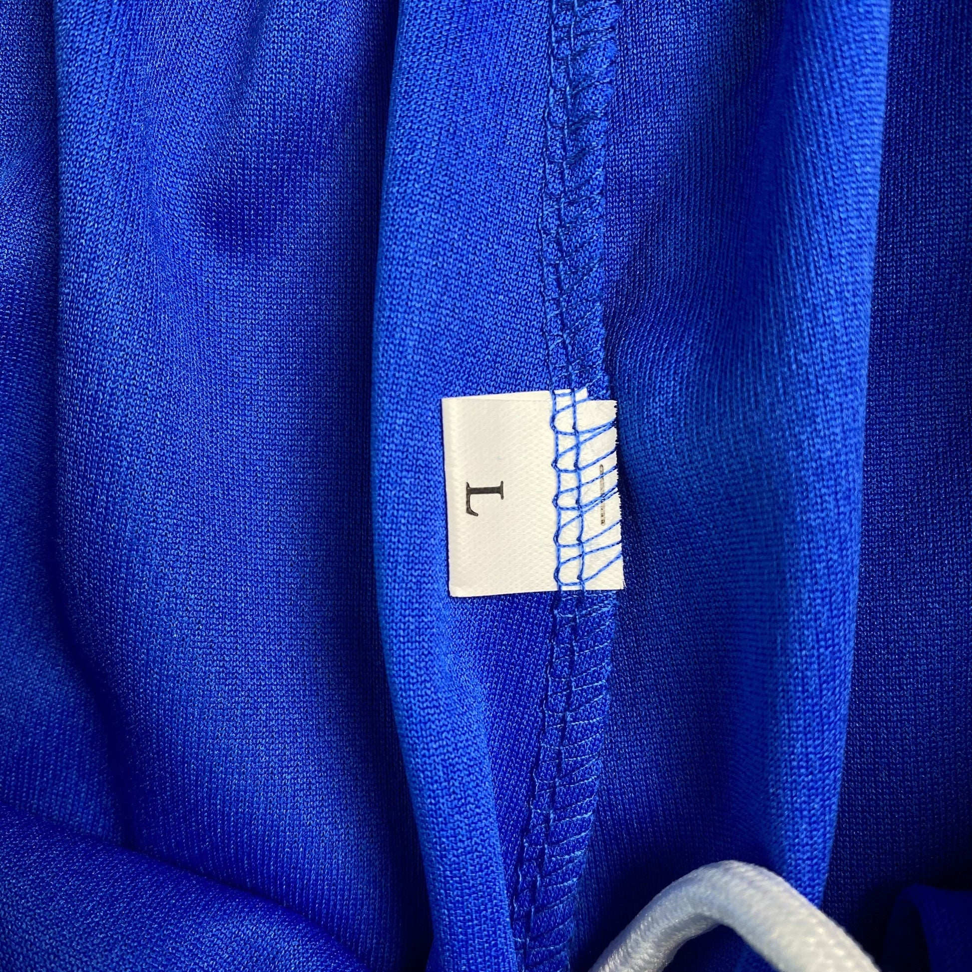 Conçu dans un bleu électrique éclatant rehaussé de touches orange contrastantes , ce short arbore le logo iconique EE , lui conférant une allure à la fois sportive et tendance . Sa taille élastiquée avec cordon de serrage ajustable assure un maintien sûr et confortable , idéal pour se détendre, jouer au basketball ou compléter un look streetwear original .