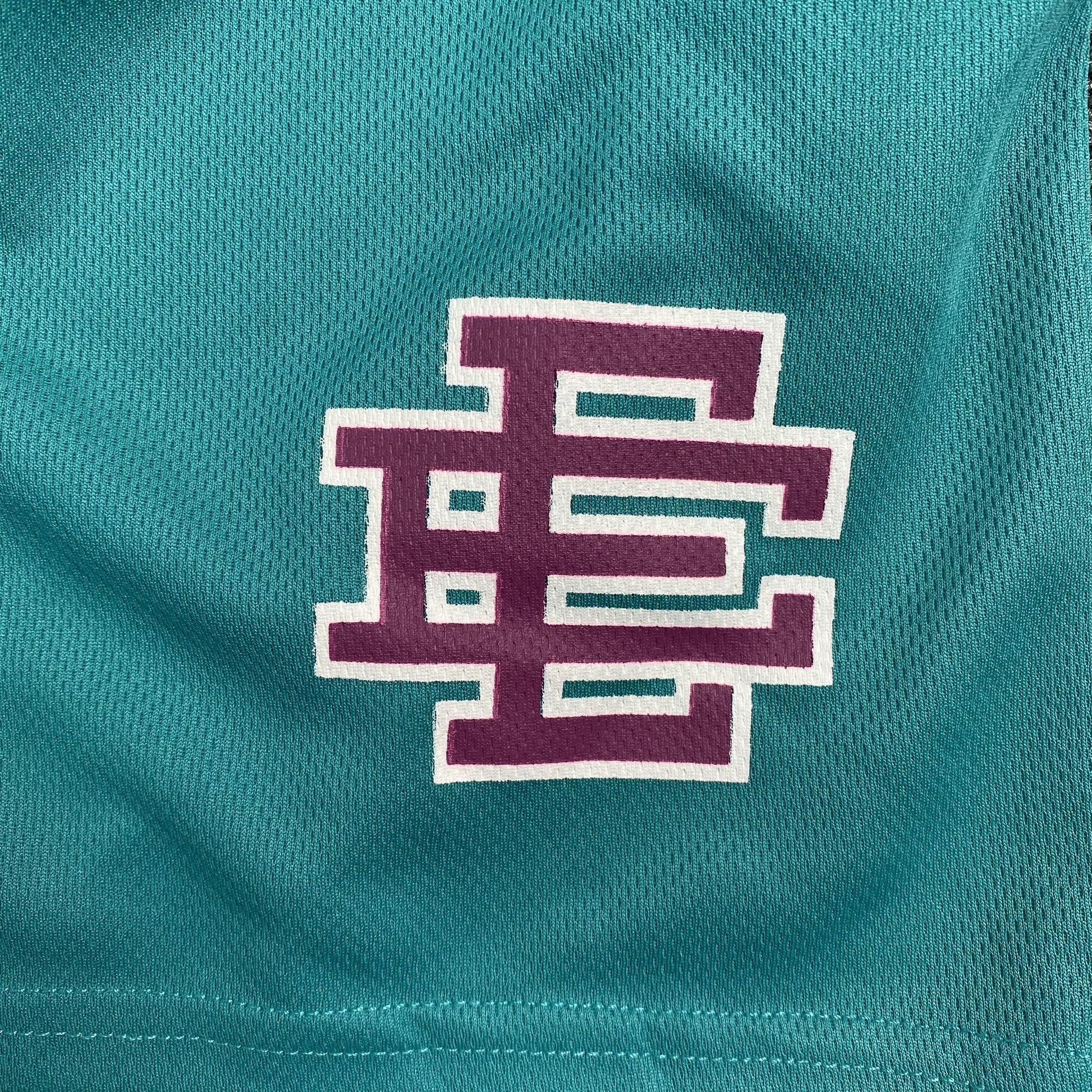 Conçu dans un coloris turquoise éclatant rehaussé de touches de violet contrastantes , ce short arbore le logo iconique EE , apportant une note affirmée à une silhouette sportive et épurée . Sa taille élastiquée avec cordon de serrage ajustable assure un maintien sûr et personnalisé , idéal pour se détendre, jouer au basketball ou compléter un look streetwear original .