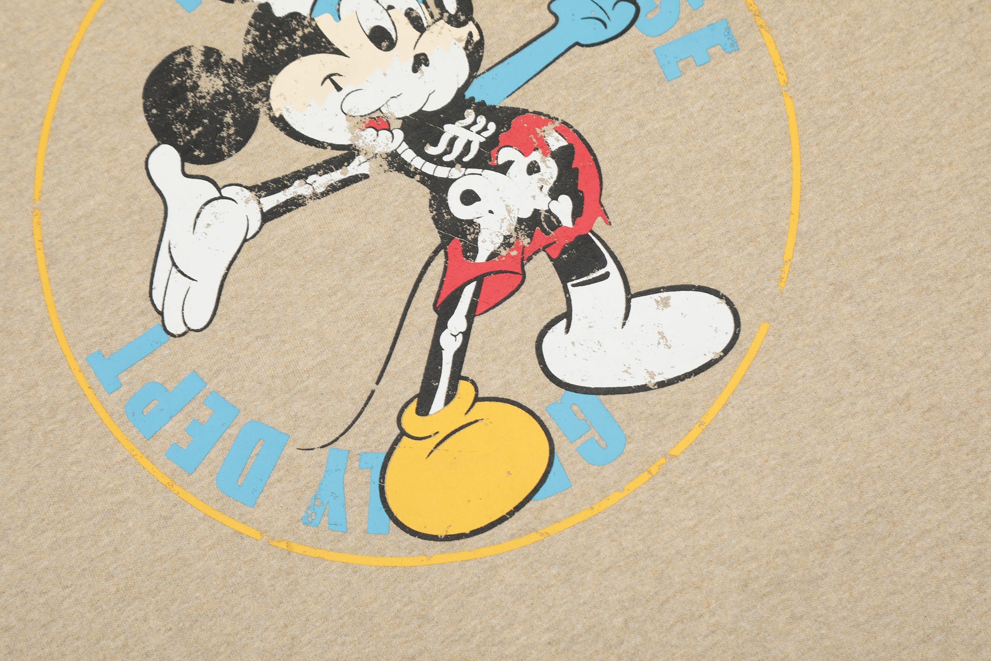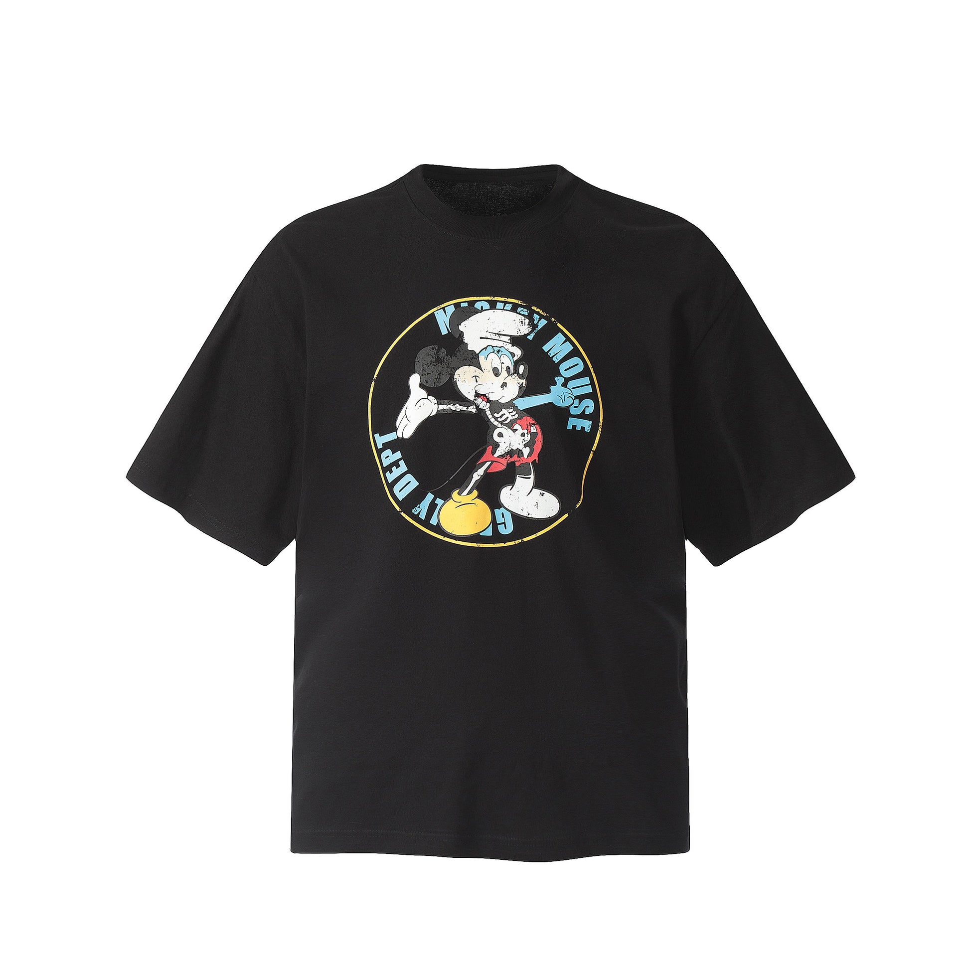 Le devant du t-shirt arbore un motif ludique et rétro de Mickey Mouse, aux couleurs vives et à l'esprit vintage. Le personnage emblématique est entouré des inscriptions « Gallery Dept. » et « Mickey Mouse », créant un design amusant et attrayant qui rend hommage à l'animation classique tout en incarnant les tendances de la mode contemporaine.