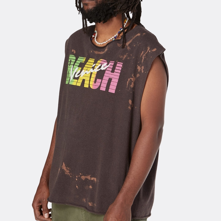 Le débardeur Venice Beach de Gallery Dept. allie style et confort à la perfection. Ce débardeur noir arbore un imprimé vibrant « Venice Beach » en lettres multicolores d'inspiration rétro sur la poitrine, lui conférant un look audacieux et ludique. Le texte se détache sur un fond à rayures horizontales, ajoutant une touche visuelle dynamique qui capture l'essence même de l'ambiance ensoleillée des plages californiennes.
