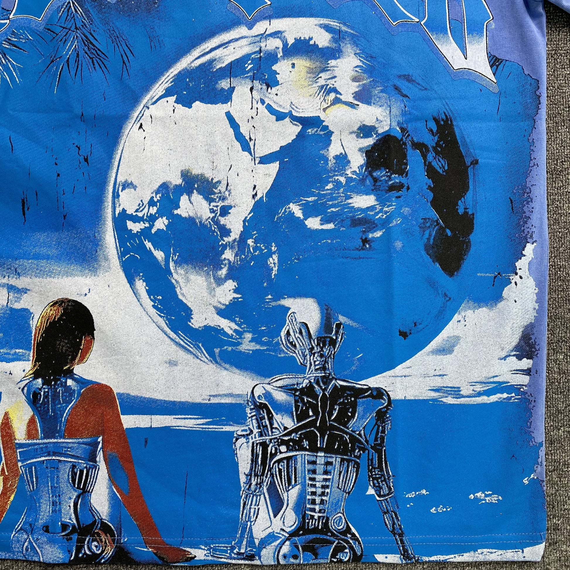 Le t-shirt GODSPEED ARTIFICIAL LOVE bleu délavé (réplique) explore le contraste entre technologie et émotion humaine , créant une pièce forte qui mêle thèmes futuristes et esthétique streetwear . Orné du motif Artificial Love de Godspeed, ce t-shirt reflète la déconnexion moderne, les émotions numériques et la frontière de plus en plus floue entre réalité et existence artificielle .