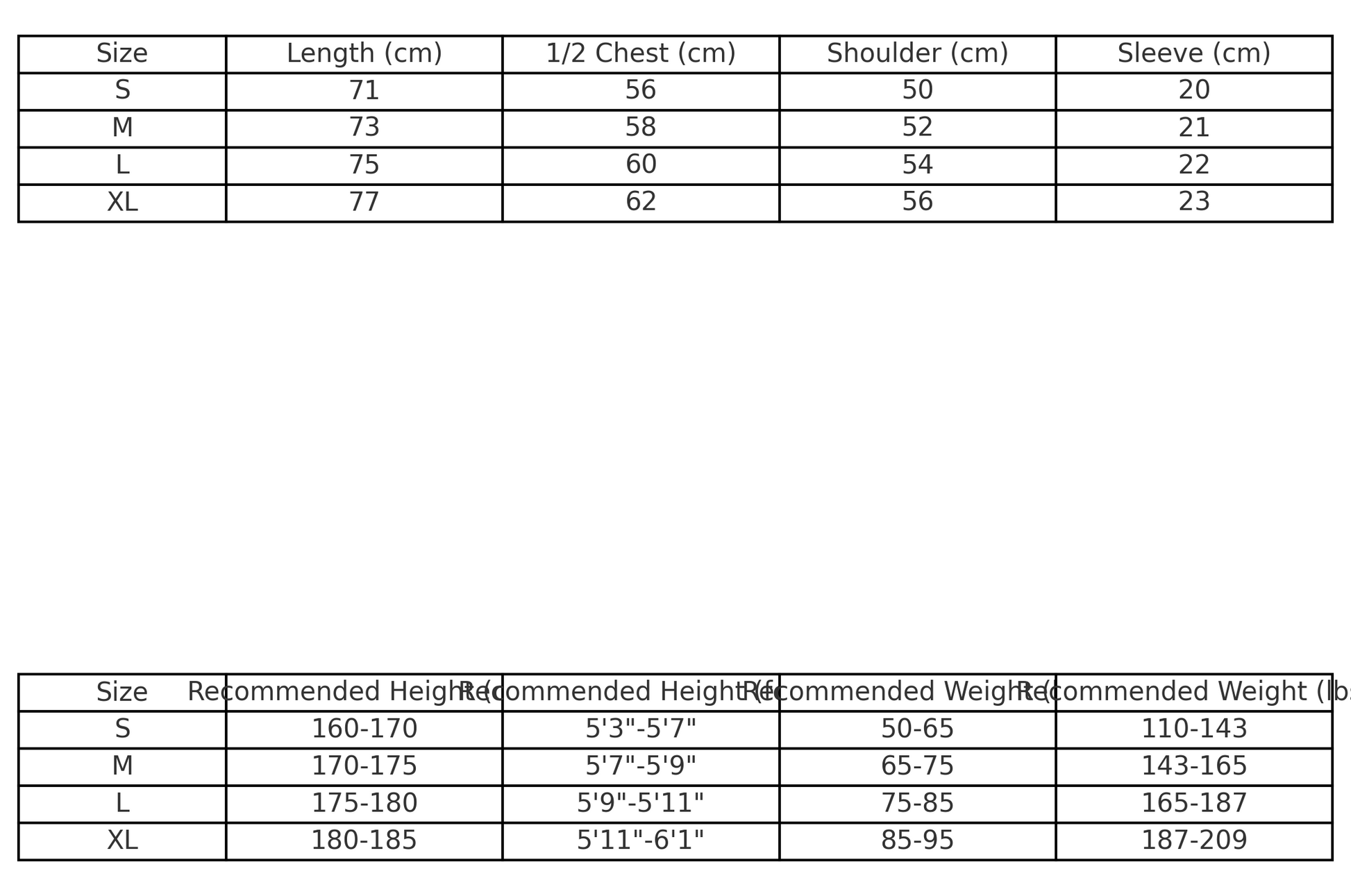 Le tableau des tailles pour cet article se trouve dans la dernière image de la galerie de produits.