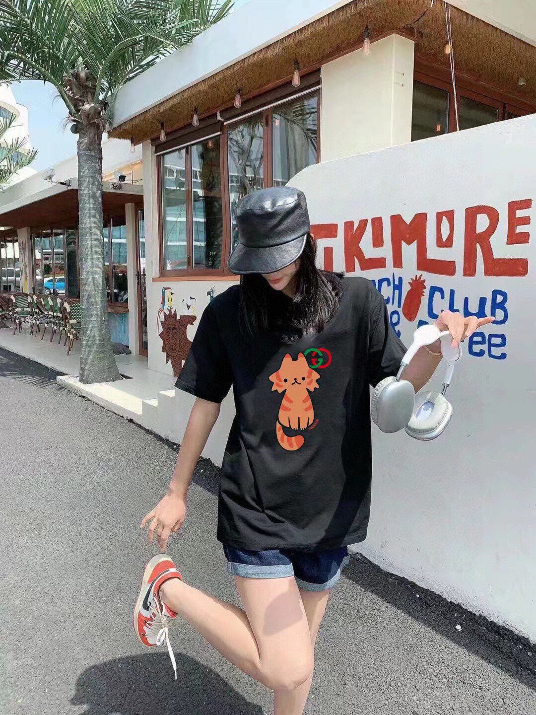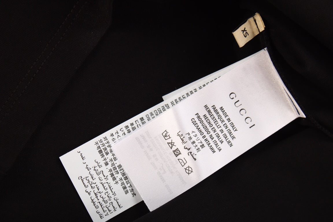 Ce t-shirt Gucci arbore un adorable motif de chat. Sur fond noir, un mignon petit chat rose est mis en valeur par le logo iconique de la marque. Confectionné dans des matières de haute qualité, il allie confort et style. Idéal pour apporter une touche ludique à vos tenues décontractées.
