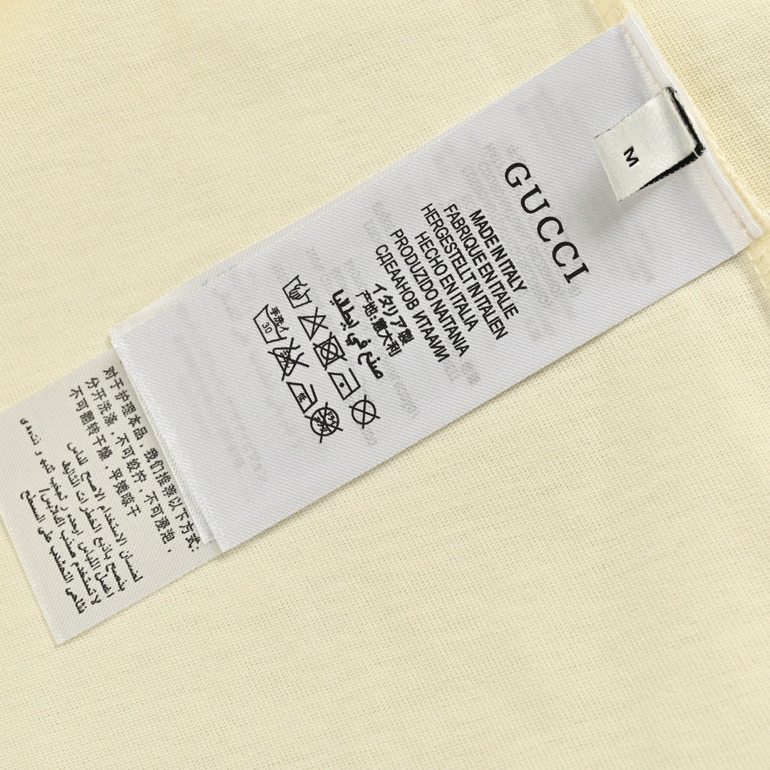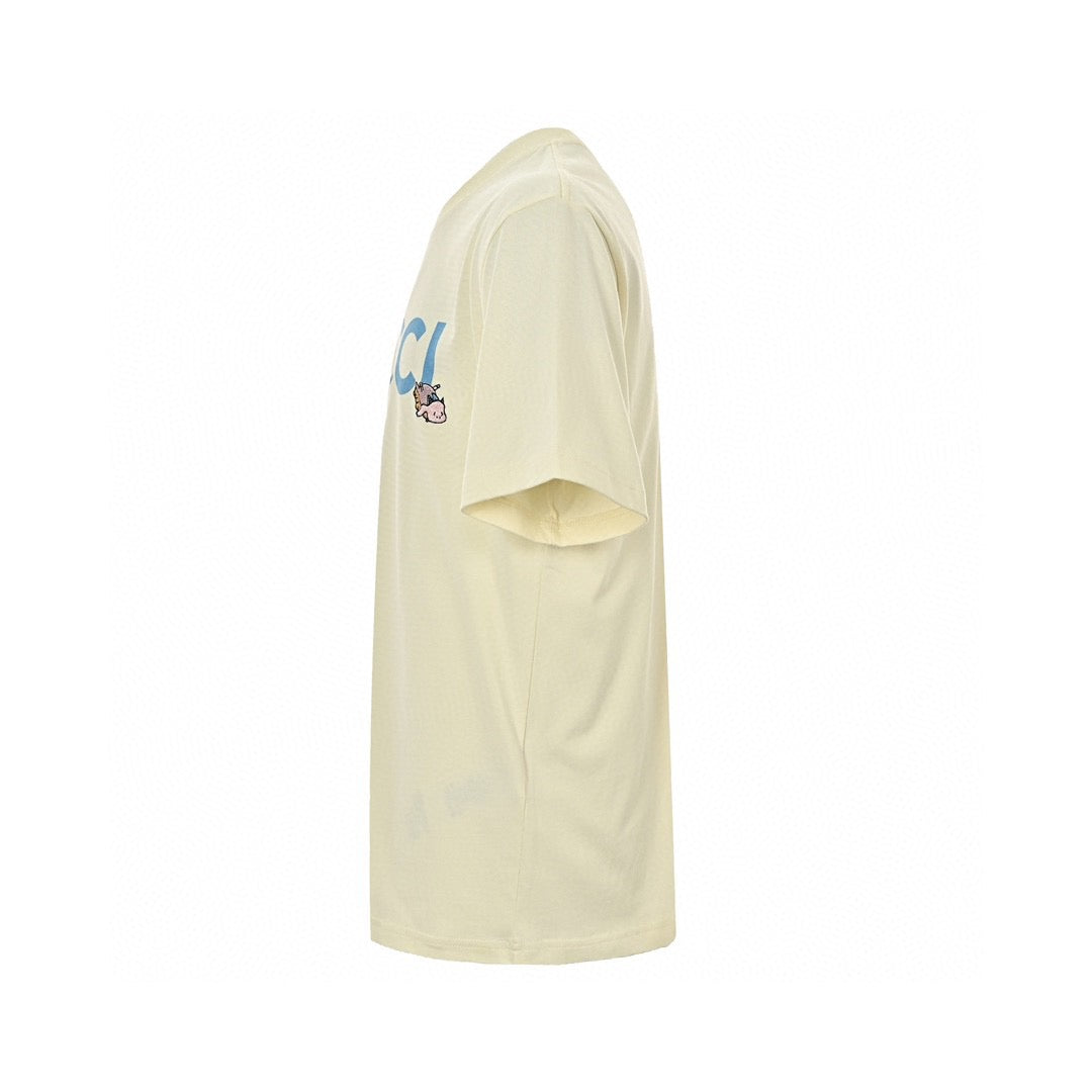 Ce t-shirt Gucci arbore un motif graphique ludique orné du logo Gucci et de petits chérubins. Son tissu en coton couleur crème met parfaitement en valeur le logo bleu vif et les chérubins colorés, faisant de ce t-shirt une pièce à la fois tendance et amusante, idéale pour toutes les garde-robes. L'alliance du luxe et de la fantaisie en fait un vêtement remarquable, parfait pour des looks décontractés et élégants.