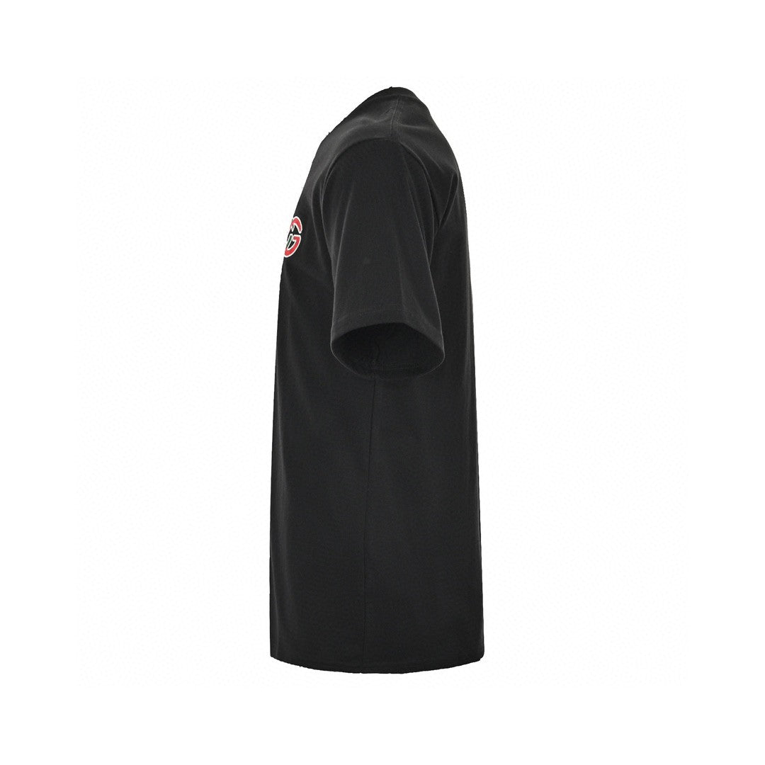 Ce t-shirt Gucci arbore un design minimaliste orné du logo GG entrelacé vert et rouge sur la poitrine. Confectionné en coton noir de haute qualité, il allie confort et élégance. Parfait pour un look raffiné et stylé, ce t-shirt est un incontournable de toute garde-robe.