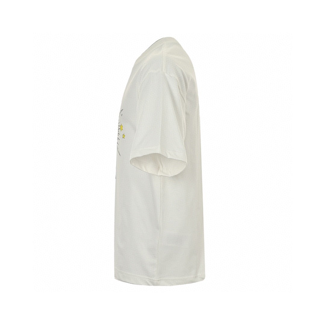 Ce t-shirt Gucci arbore un motif central saisissant représentant un œil entouré de rayons et d'étoiles, créant un design mystique et captivant. Le fond blanc classique met en valeur ce dessin complexe, faisant de ce t-shirt une pièce unique et élégante, idéale pour toute garde-robe.