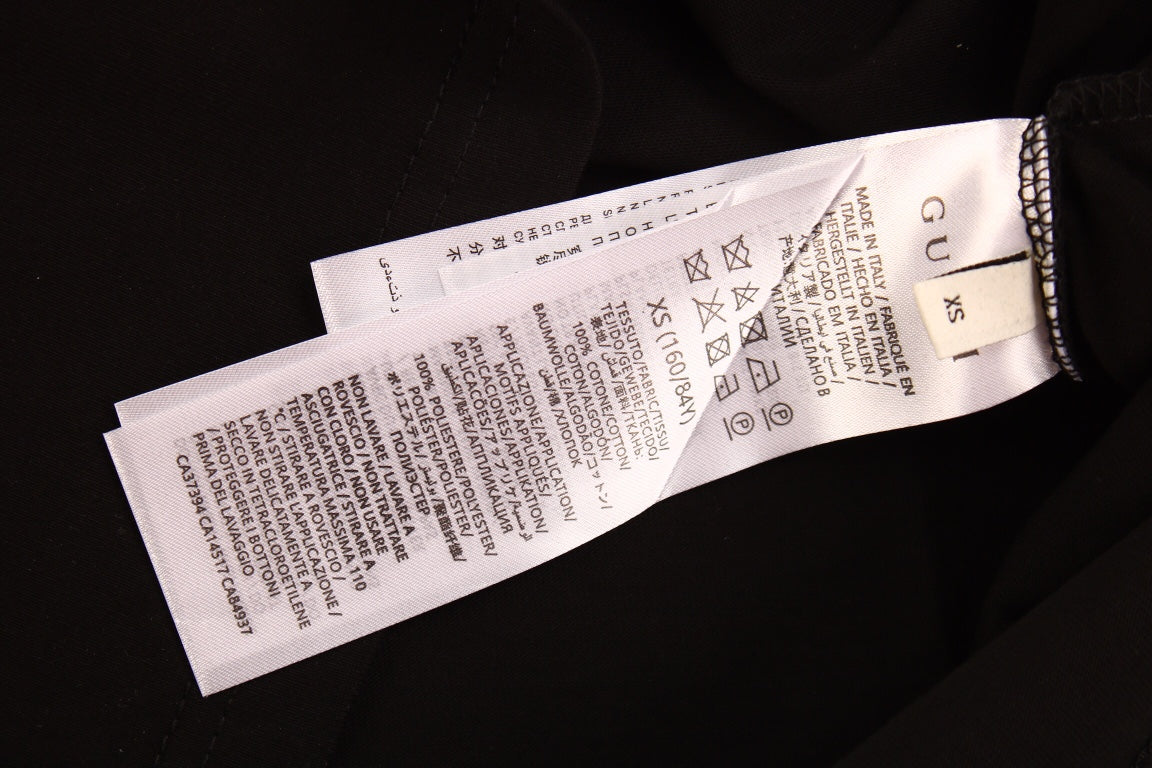 Polo noir orné d'un logo Gucci brodé en vert sur la poitrine. Col et manches aux détails verts contrastent avec élégance. Confectionné en coton premium pour un confort optimal et une coupe classique. Idéal pour un look casual chic.
