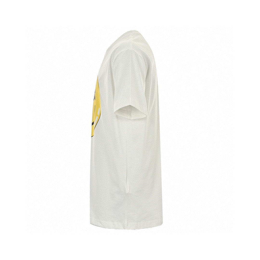 Ce t-shirt Gucci arbore un motif ludique avec un grand smiley jaune sur le devant. L'imprimé, à la fois audacieux et joyeux, est rehaussé du logo Gucci intégré. Confectionné dans des matières de haute qualité, ce t-shirt garantit confort et durabilité. Parfait pour un look décontracté, il apporte une touche de fantaisie et de légèreté à toutes vos tenues.