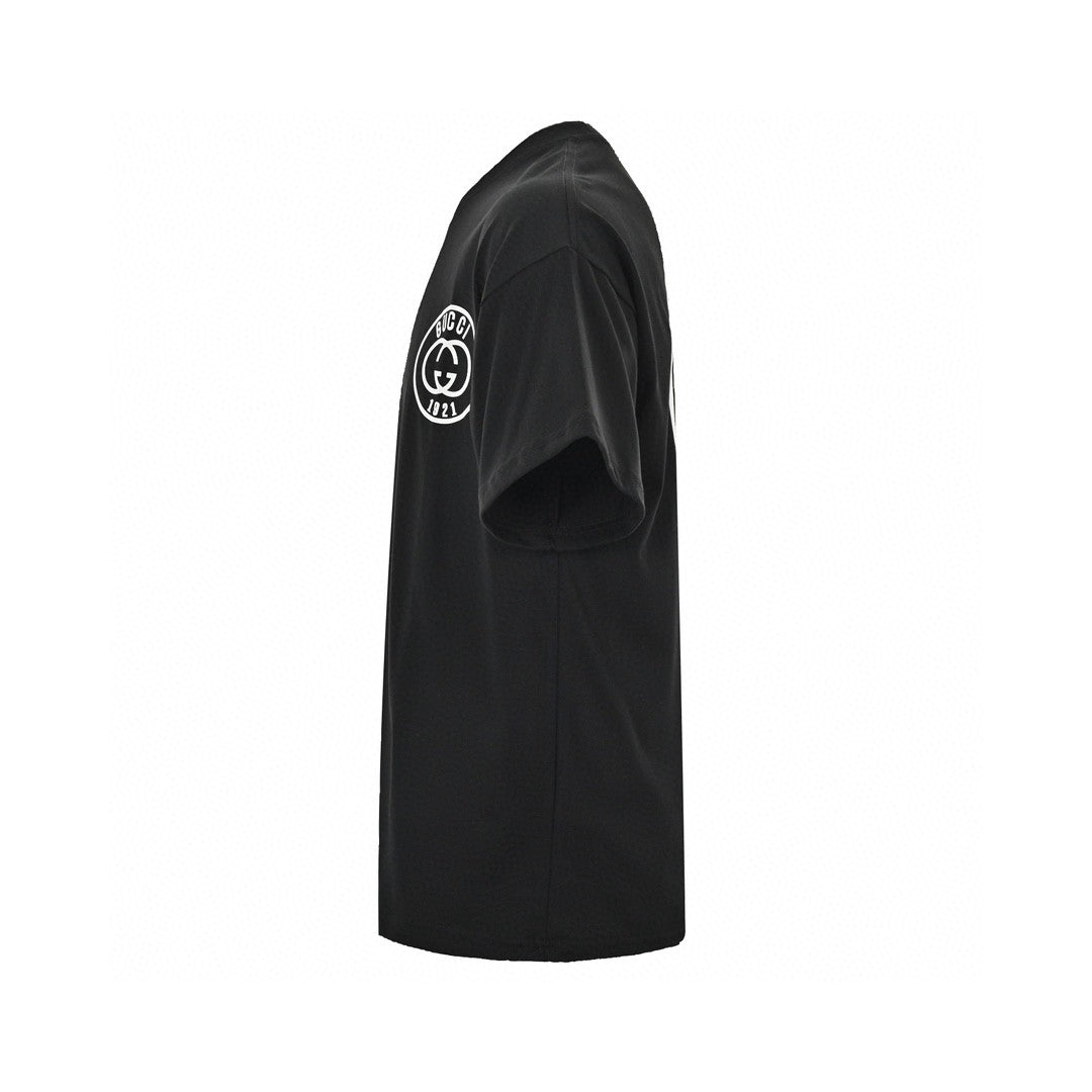 Ce t-shirt Gucci arbore un design classique avec le logo GG emblématique et l'inscription « 1921 » sur la poitrine gauche. Son tissu noir lui confère une allure élégante et raffinée, idéale pour apporter une touche de sophistication à toutes vos tenues décontractées. Parfait pour celles et ceux qui apprécient les marques classiques et la mode de haute qualité.