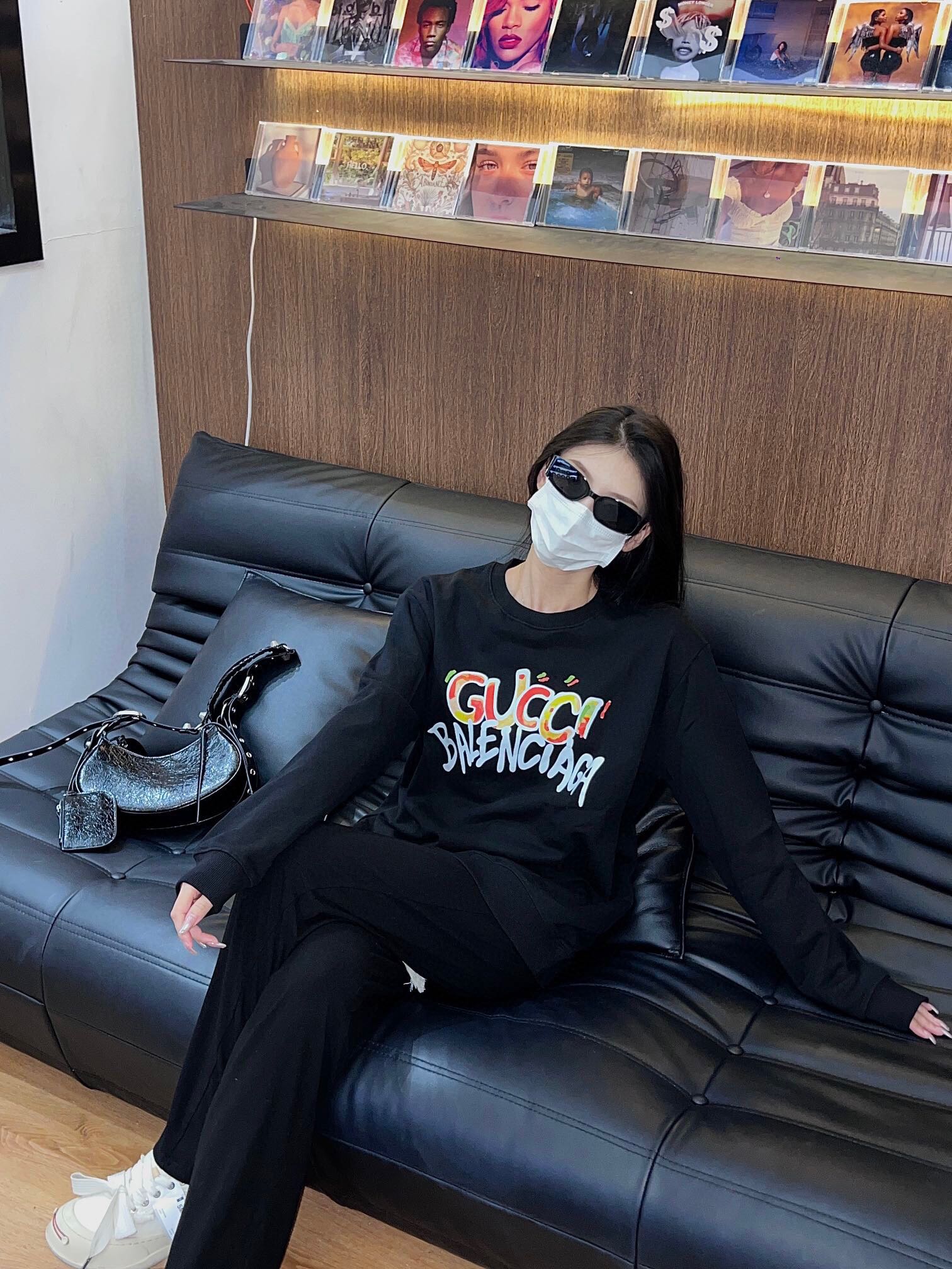Sweat-shirt noir orné d'un imprimé ludique et coloré « Gucci Balenciaga ». Conçu avec des poignets et un ourlet côtelés pour un confort optimal. Parfait pour un look décontracté et stylé.
