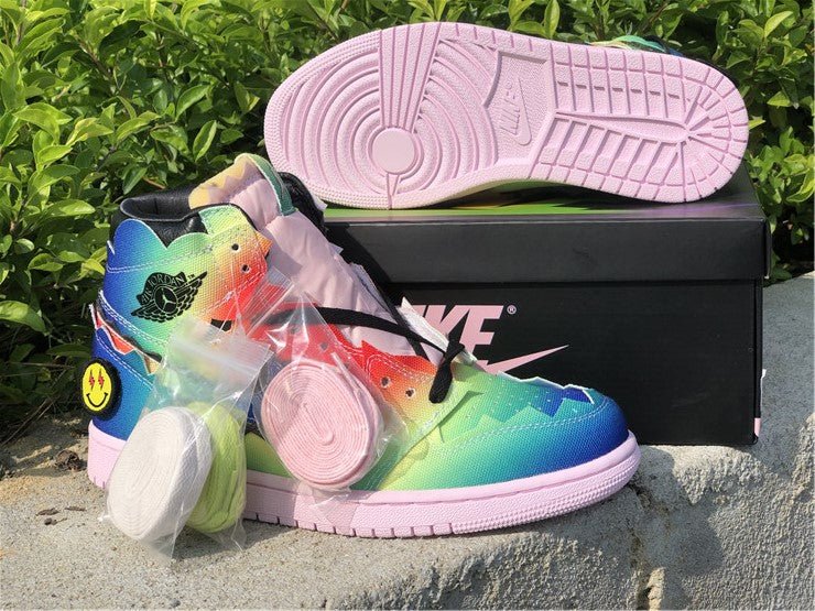 Conçue avec un souci du détail exceptionnel, la JORDAN 1 RETRO HIGH x J BALVIN arbore un design qui fusionne harmonieusement le charme intemporel de la Jordan 1 Retro High et l'esthétique unique et colorée de J Balvin. Cette sneaker se distingue par une palette de couleurs vibrantes et captivantes, à l'image du style emblématique de J Balvin.