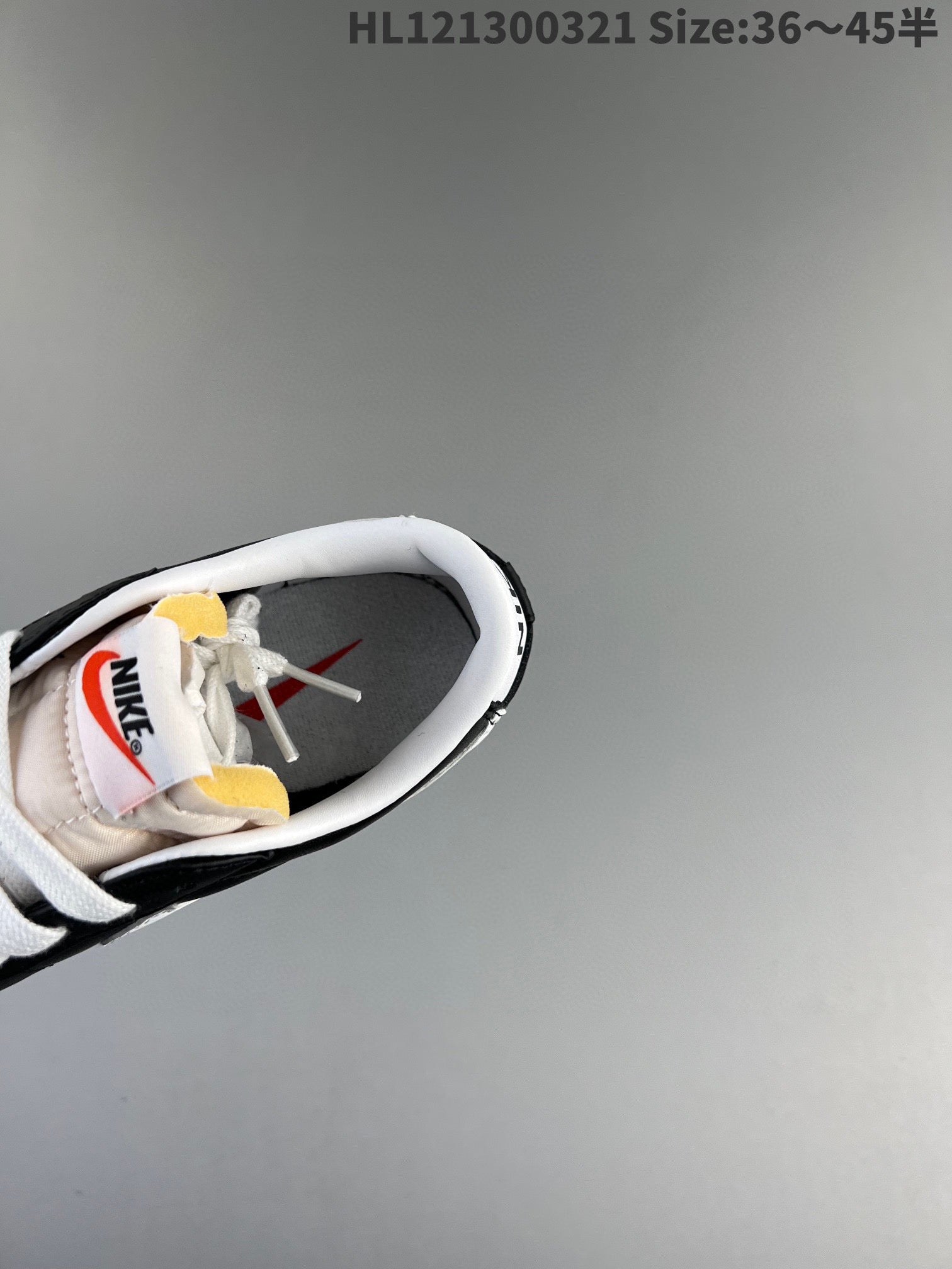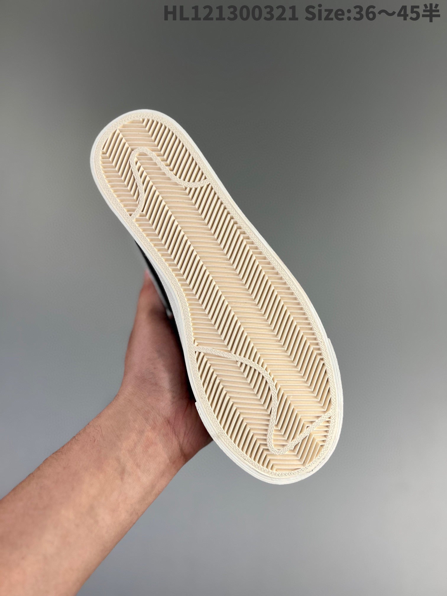La Nike Blazer Low '77, en coloris noir et blanc, offre un look épuré et minimaliste qui allie avec brio le style rétro du basketball à l'esprit streetwear contemporain. Son empeigne en cuir noir lisse est rehaussée de détails en cuir blanc éclatant et du Swoosh blanc emblématique, créant un contraste saisissant qui confère à la chaussure un charme intemporel. Sa coupe basse lui assure une silhouette décontractée et polyvalente, tandis que sa semelle intermédiaire en mousse souple garantit un confort optimal tout au long de la journée. La semelle extérieure en caoutchouc résistant, ornée d'un motif à chevrons, offre une adhérence et une traction exceptionnelles, la rendant idéale pour un usage quotidien et les activités physiques légères. Grâce à son coloris noir et blanc, la Blazer Low '77 est un modèle polyvalent, facile à associer à toutes vos tenues, du jean au vêtement de sport. Avec ses lignes épurées et son élégance discrète, cette sneaker reste un incontournable pour celles et ceux qui apprécient le style classique revisité.