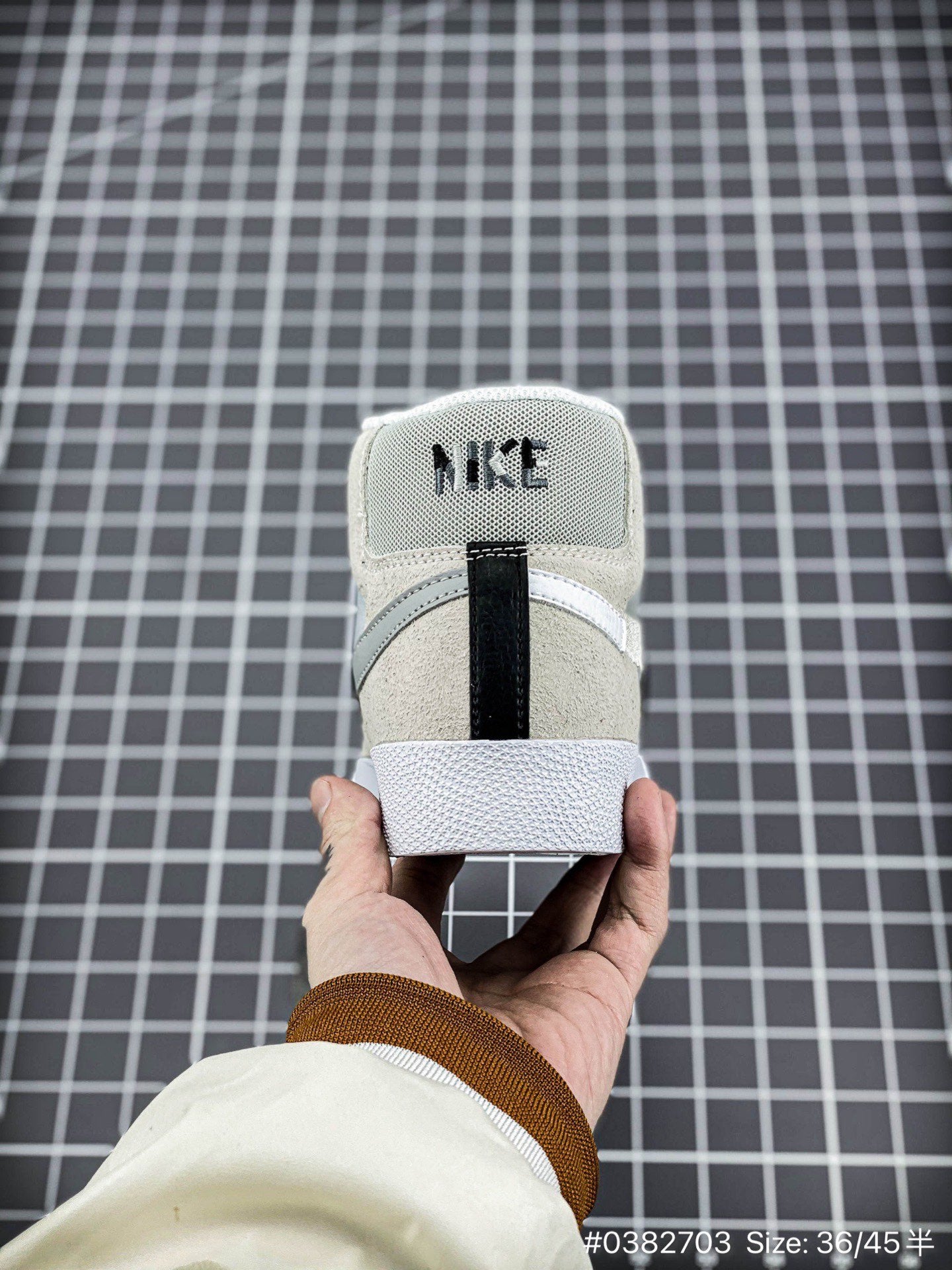 La Nike Blazer montante '1977 « Swoosh dépareillé » grise et noire revisite avec audace le design classique de la Blazer. Dotée d'une élégante empeigne en daim gris, cette silhouette montante arbore des Swoosh dépareillés – l'un noir, l'autre blanc – pour un look asymétrique saisissant. Son design d'inspiration rétro est rehaussé de détails vintage tels que la languette en mousse apparente et le logo Nike classique sur la languette arrière. Le col rembourré assure un maintien sûr et confortable, tandis que la semelle extérieure en caoutchouc robuste à chevrons garantit une adhérence et une durabilité optimales. Parfaite pour celles et ceux qui aiment affirmer leur style, cette sneaker allie avec brio style iconique et créativité moderne, ce qui en fait un modèle polyvalent, idéal pour les tenues décontractées comme pour le streetwear.