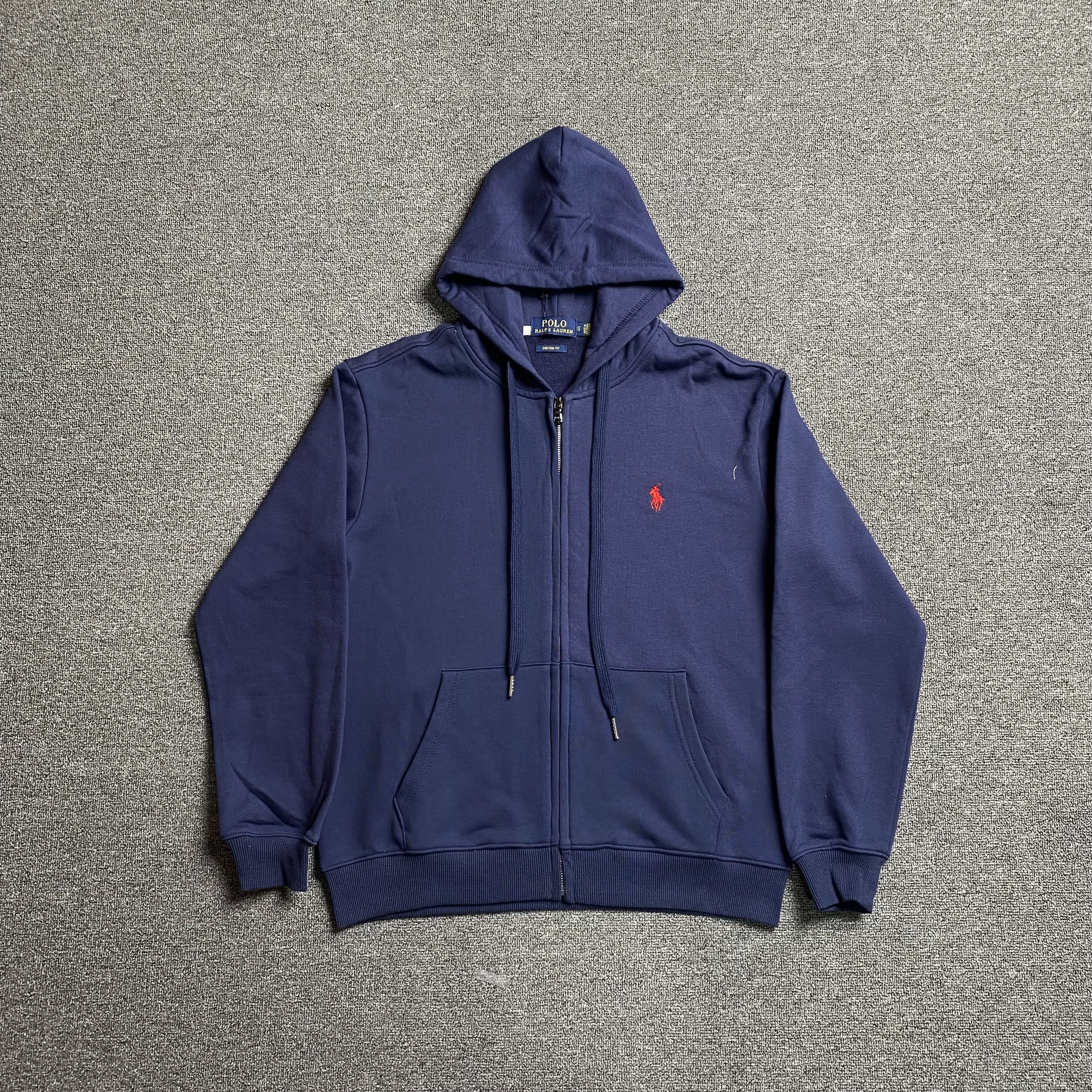 Ce modèle, d'un bleu marine intemporel , arbore le logo emblématique Polo Ralph Lauren brodé sur la poitrine , pour une touche d' élégance raffinée . Sa fermeture éclair intégrale, sa capuche ajustable par cordon et ses poignets côtelés assurent un maintien optimal et une coupe personnalisée , idéale pour un style décontracté ou plus habillé .