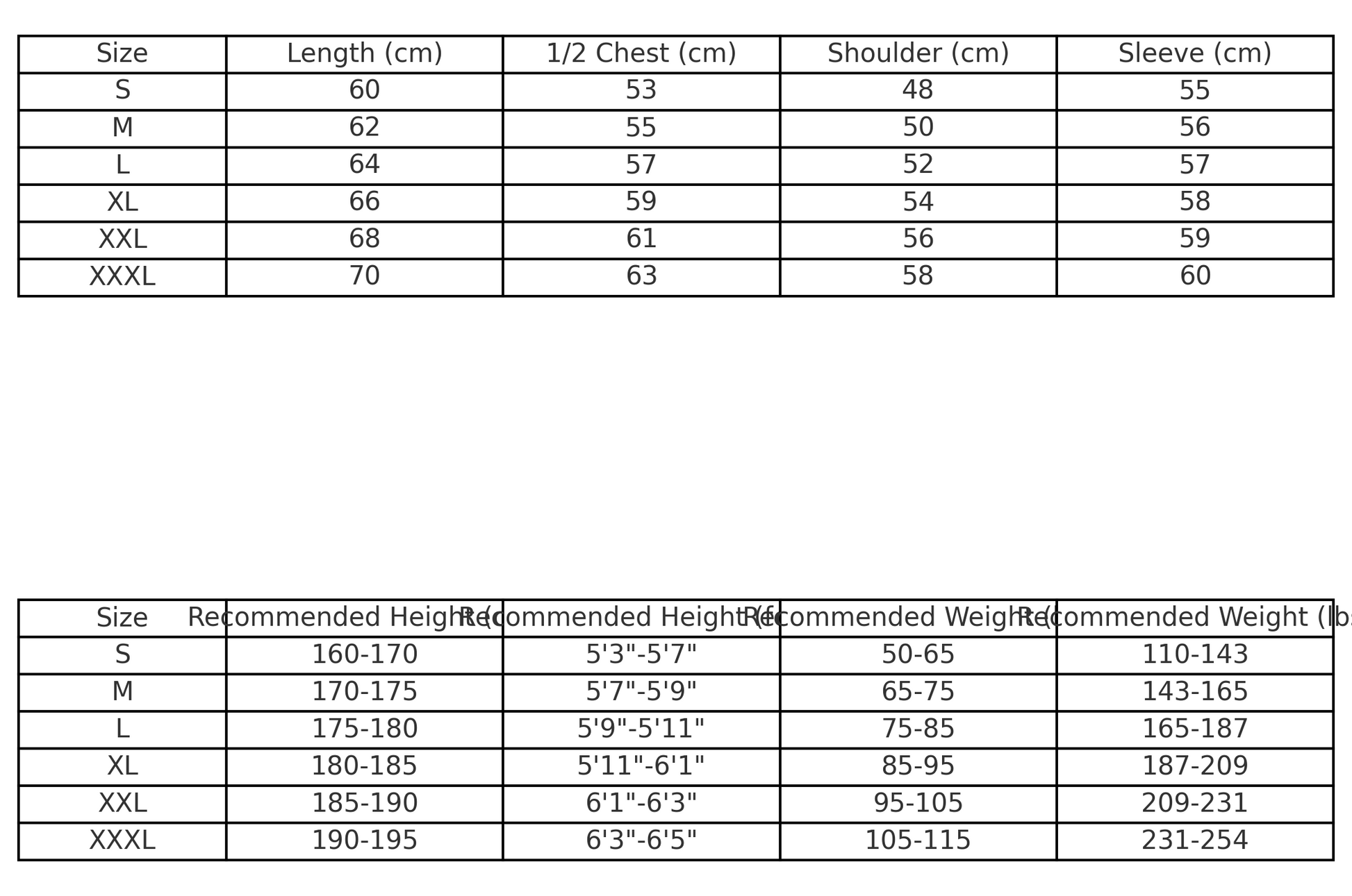 Le tableau des tailles pour cet article se trouve dans la dernière image de la galerie de produits.