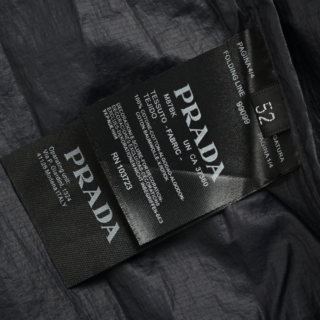 Cette veste Prada arbore un design noir épuré orné du logo Prada sur la poitrine. Elle est dotée d'une fermeture éclair sur le devant, d'une capuche ajustable et de deux poches zippées. Sa matière légère est idéale pour la superposition. Parfaite pour un look à la fois sophistiqué et pratique.