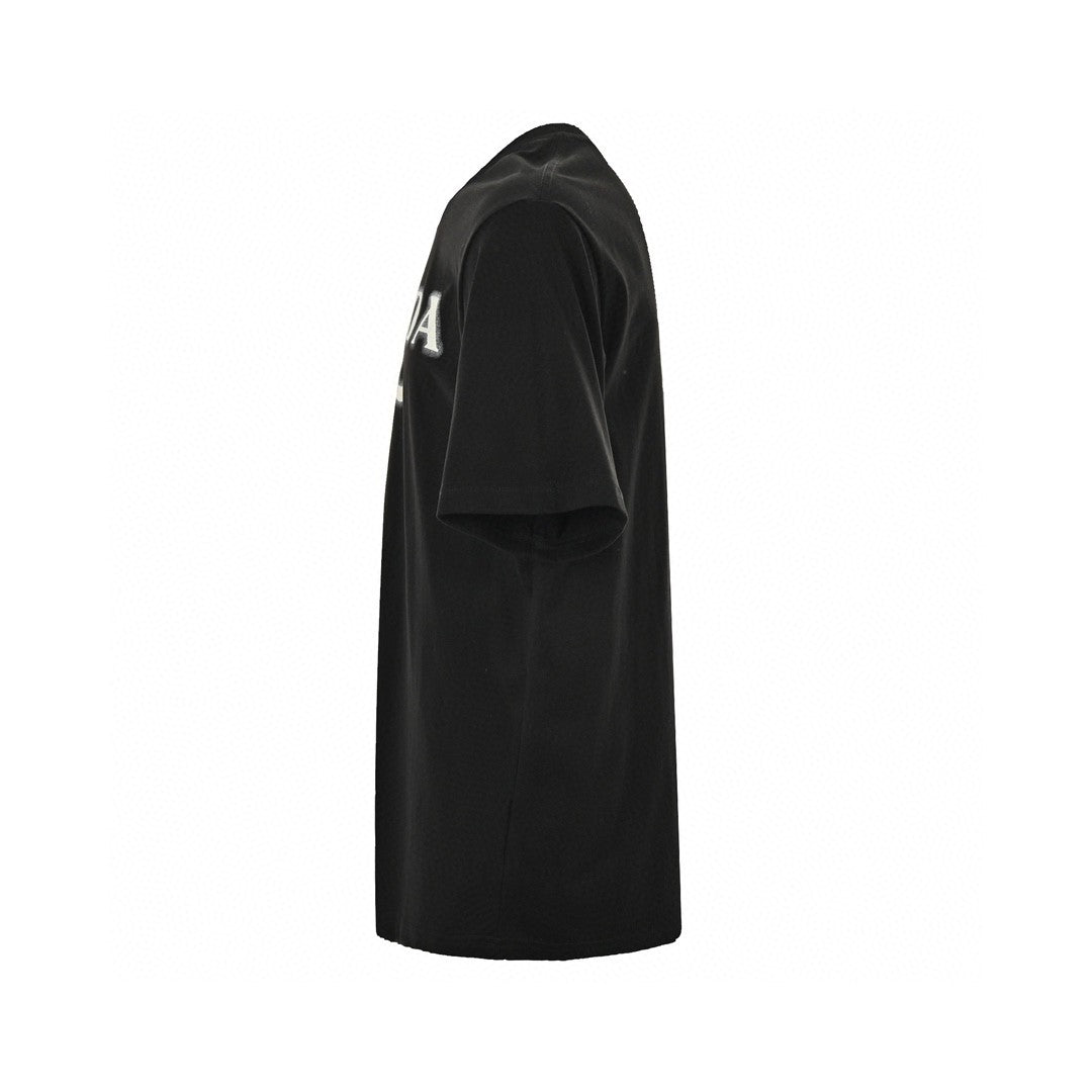 Ce t-shirt Prada arbore un design classique orné du logo Prada Milano et d'un emblème blanc sur la poitrine. Confectionné en coton noir de haute qualité, il allie confort et élégance. Parfait pour un look raffiné et stylé, ce t-shirt est un incontournable de toute garde-robe.