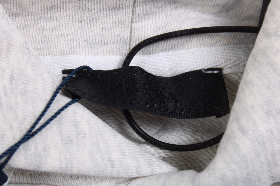 Ce sweat à capuche Prada Milano arbore un design classique orné du logo iconique de la marque. Confectionné dans un tissu gris haut de gamme, il allie confort et élégance. Sa capuche à cordon et sa poche kangourou apportent une touche de fonctionnalité à son style raffiné. Idéal pour un look décontracté rehaussé d'une note de luxe.