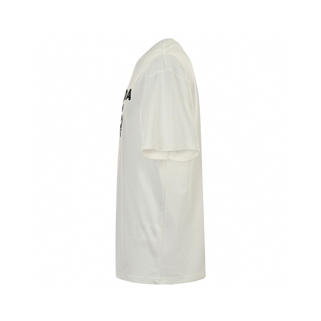Ce t-shirt Prada arbore un design classique orné du logo Prada Milano et d'un emblème sur la poitrine. Confectionné en coton blanc de haute qualité, il allie confort et élégance. Parfait pour un look raffiné et stylé, ce t-shirt est un incontournable de toute garde-robe.