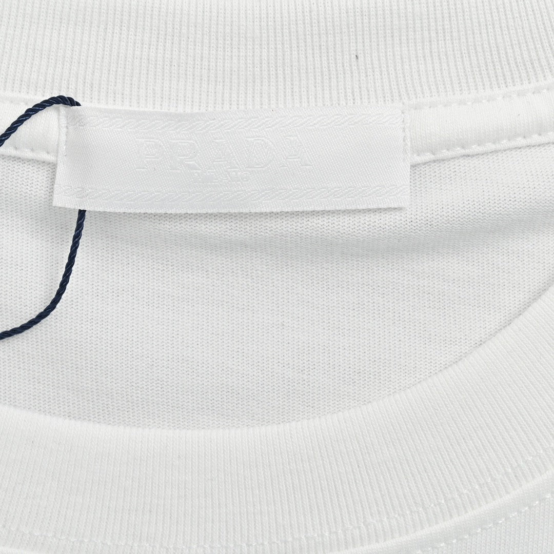 Le t-shirt Prada Pop Art Logo arbore un design ludique et coloré qui capture l'essence de l'art moderne. Confectionné en coton de haute qualité, ce t-shirt blanc offre un confort optimal. Sur le devant, une grille de neuf logos Prada aux couleurs vibrantes crée un effet visuel saisissant. Chaque logo est inscrit dans un carré, structurant ainsi le design. Idéal pour affirmer son style, ce t-shirt allie l'emblématique identité Prada à une touche contemporaine. Parfait pour un look décontracté, il se marie à merveille avec un jean ou un short pour une allure chic et tendance.
