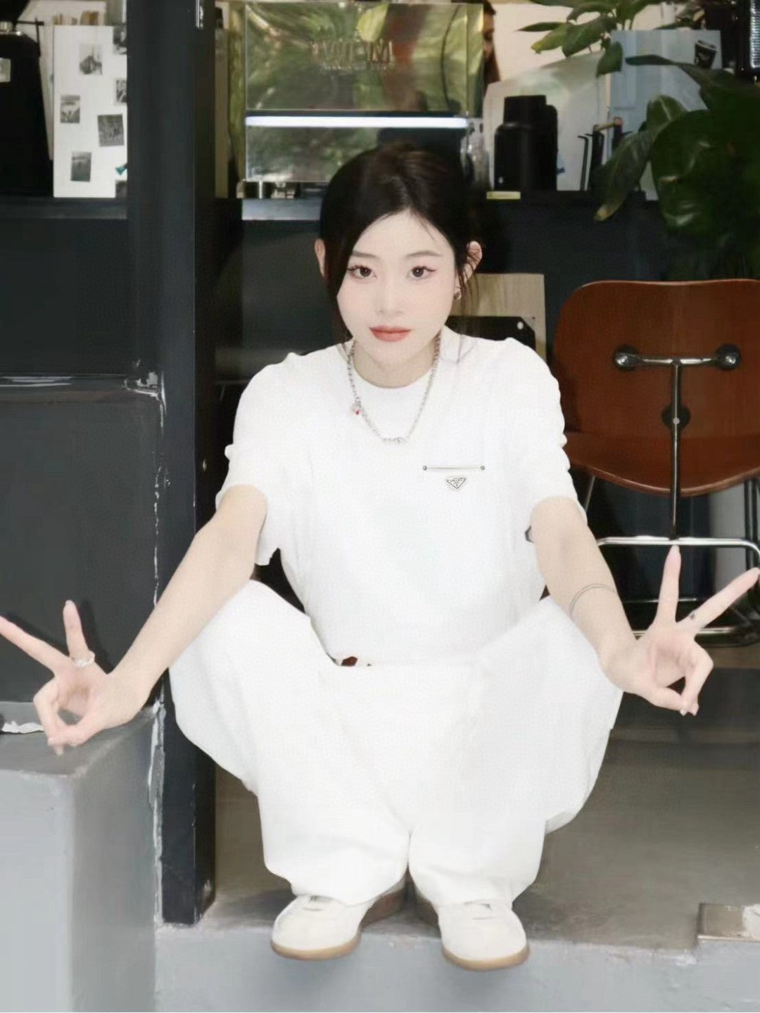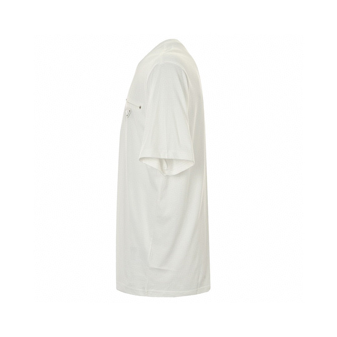 Ce t-shirt Prada arbore un design minimaliste blanc. Il est doté d'une petite poche poitrine zippée, ornée du logo triangulaire emblématique de Prada. Ses lignes épurées et son esthétique simple en font le choix idéal pour une allure moderne et raffinée. Parfait pour les occasions décontractées et semi-formelles.