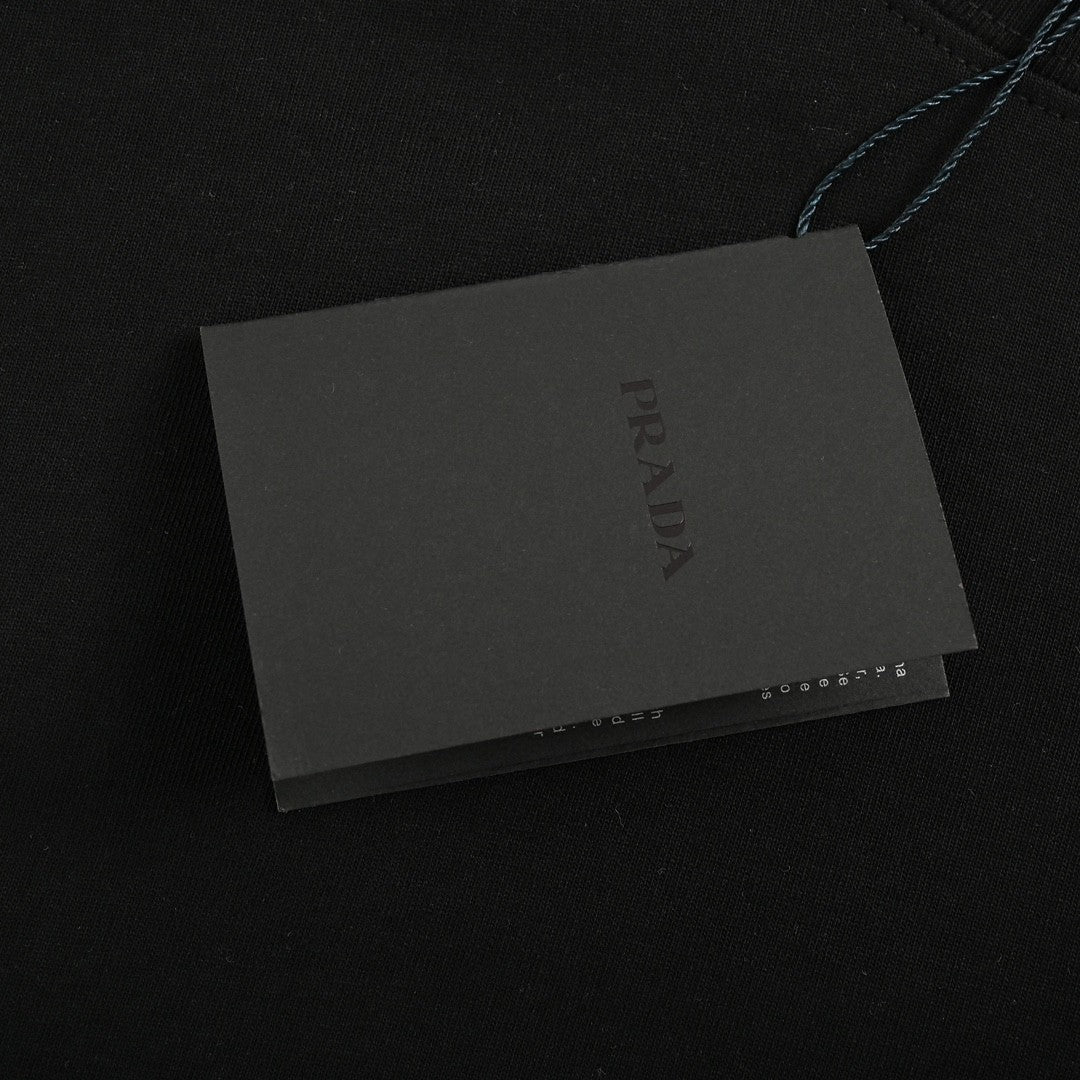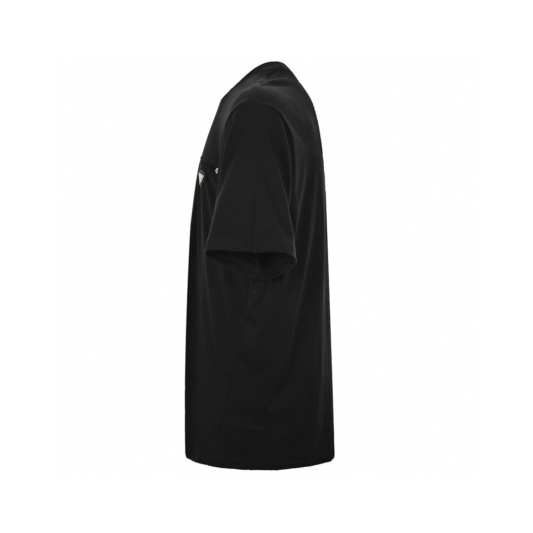 Ce t-shirt Prada arbore un design noir épuré. Il est doté d'une petite poche poitrine zippée, ornée du logo triangulaire emblématique de Prada. Ses lignes nettes et son esthétique sobre en font le choix idéal pour une allure moderne et raffinée. Parfait pour les occasions décontractées et semi-formelles.