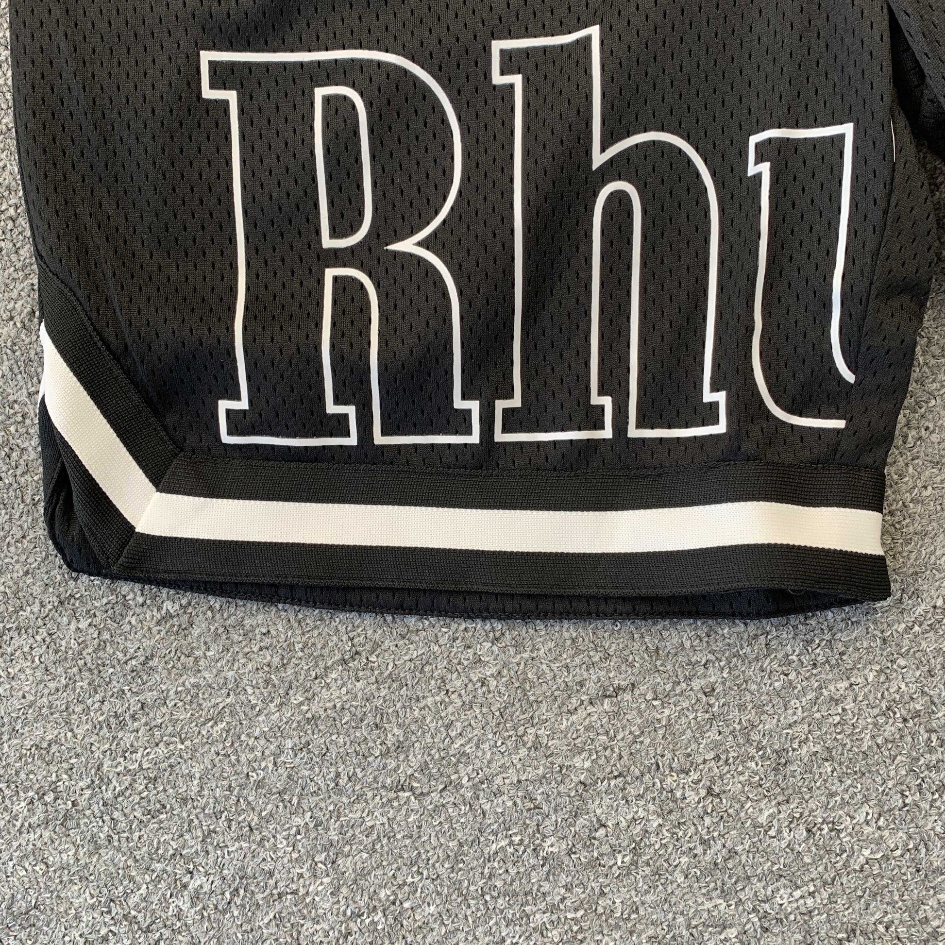 Le short RHUDE COURT LOGO noir et blanc (réplique) allie l'esthétique vintage du basketball au streetwear haut de gamme , ce qui en fait une pièce incontournable pour les amateurs de mode de luxe d'inspiration rétro . Confectionné en mesh premium , ce short offre respirabilité et confort tout en légèreté , idéal au quotidien ou pour un look sportif décontracté .