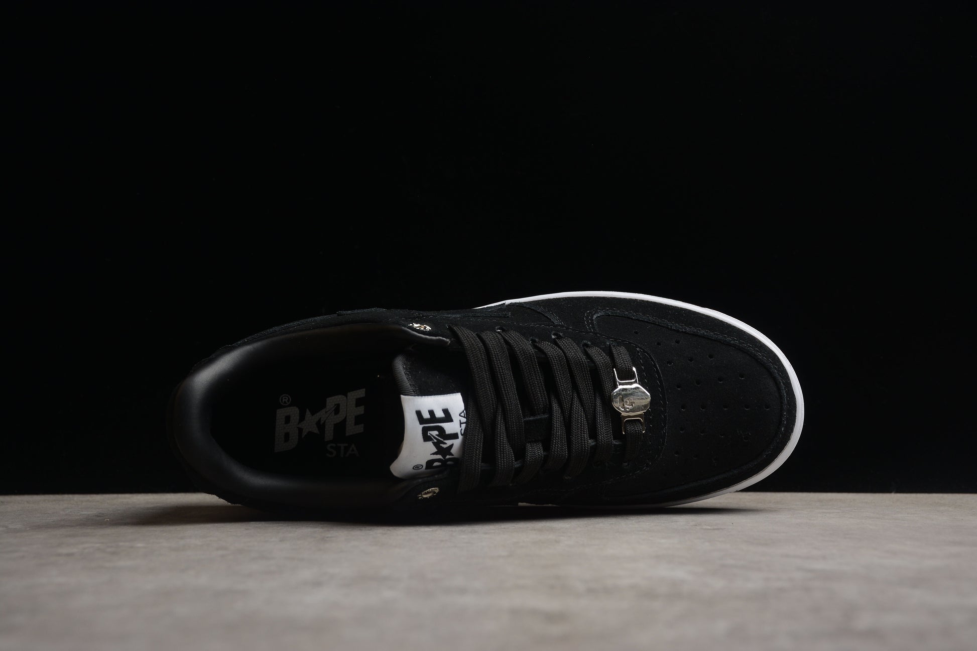 Sublimez votre collection de sneakers avec les BAPE STA basses en daim noir, un parfait mélange de luxe et de style streetwear. Ces sneakers sont conçues pour celles et ceux qui apprécient les matériaux haut de gamme et une esthétique raffinée.